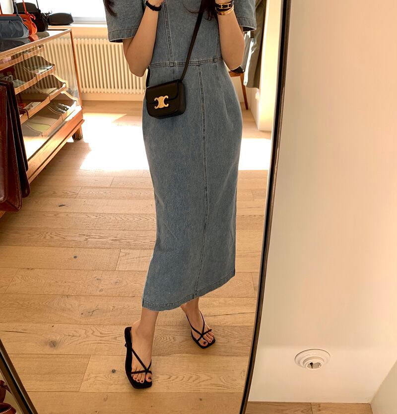 大人エレガントなスリムシルエットのデニムワンピースが登場しました!