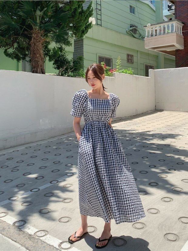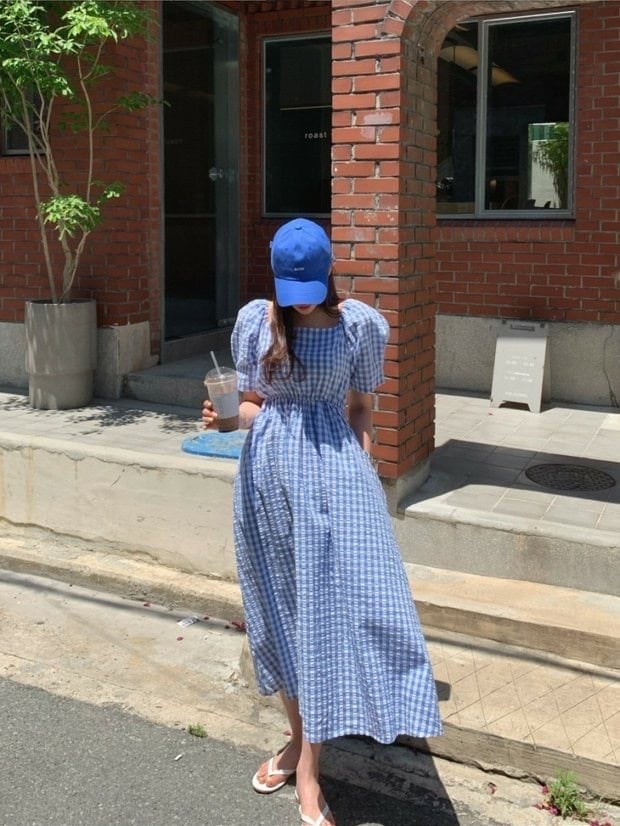 美しいギンガムチェック柄が、清楚でありながらおしゃれな雰囲気を演出します。