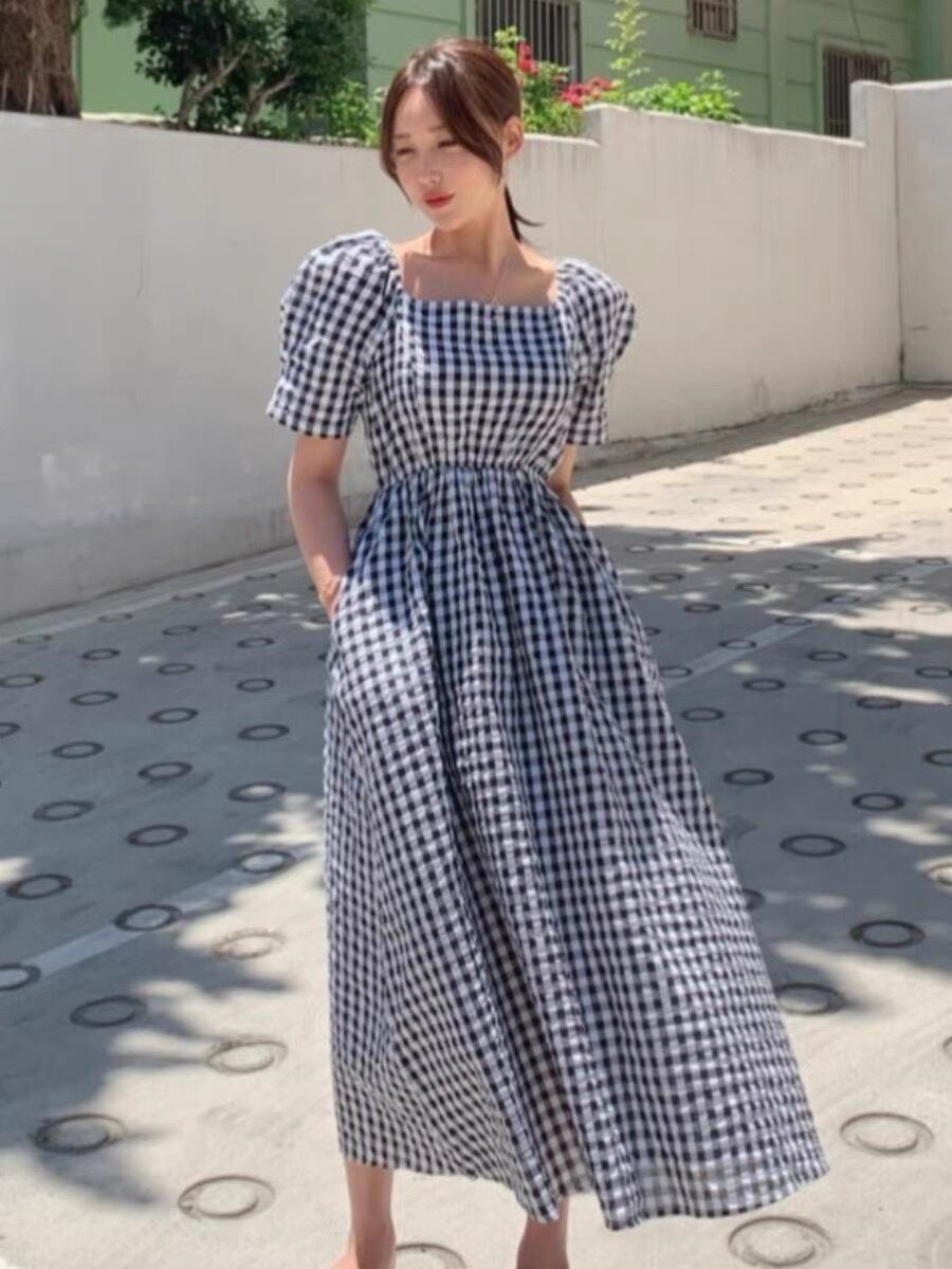 【ワンピース】 ワンピース レディース きれいめ 夏 ギンガムチェック 20代 30代 40代 50代 おしゃれ きれいめ 可愛い フェミニン エレガント 春 夏 秋 20代 30代 40代 50代 ロング ワンピース 春夏 ワンピースドレス 韓国 ワンピースドレス ワンピース ブラック 黒 ブルー 青 M L XL