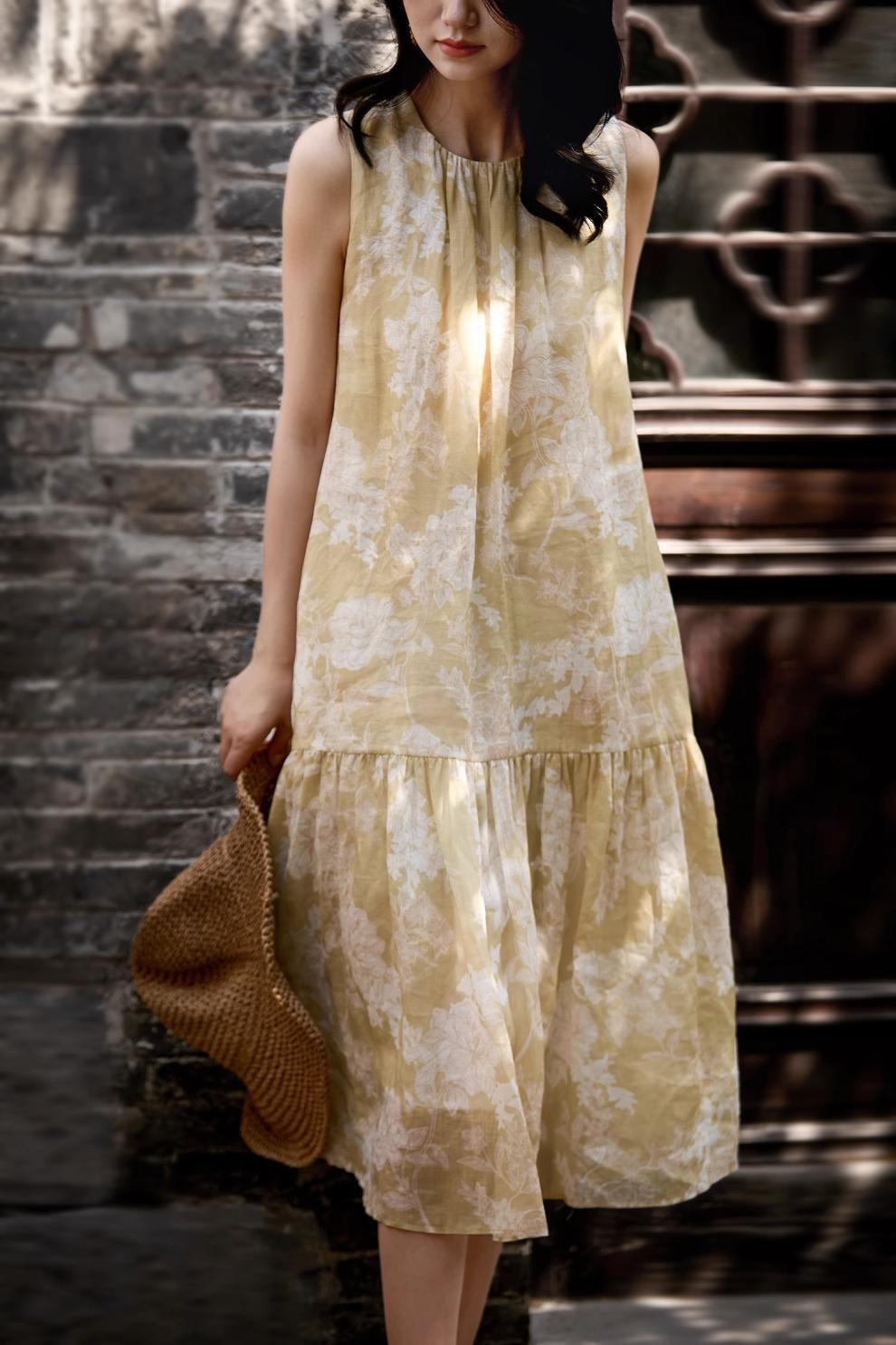 【ワンピース】大きいサイズ ワンピース レディース 夏 ティアード ボタニカル 20代 30代 40代 50代 おしゃれ きれいめ 可愛い フェミニン エレガント 春 夏 秋 20代 30代 40代 50代 ミモレ ワンピース 春夏 ワンピースドレス 韓国 ワンピースドレス ワンピース イエロー 黄色 S M L XL 2XL