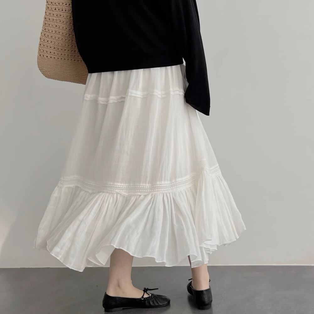 【スカート】 スカート レディース 夏 ティアード きれいめ 可愛い ハイウエスト ロングスカート 春 夏 秋 20代 30代 40代 50代 フレアスカート ホワイト 白 S M L XL