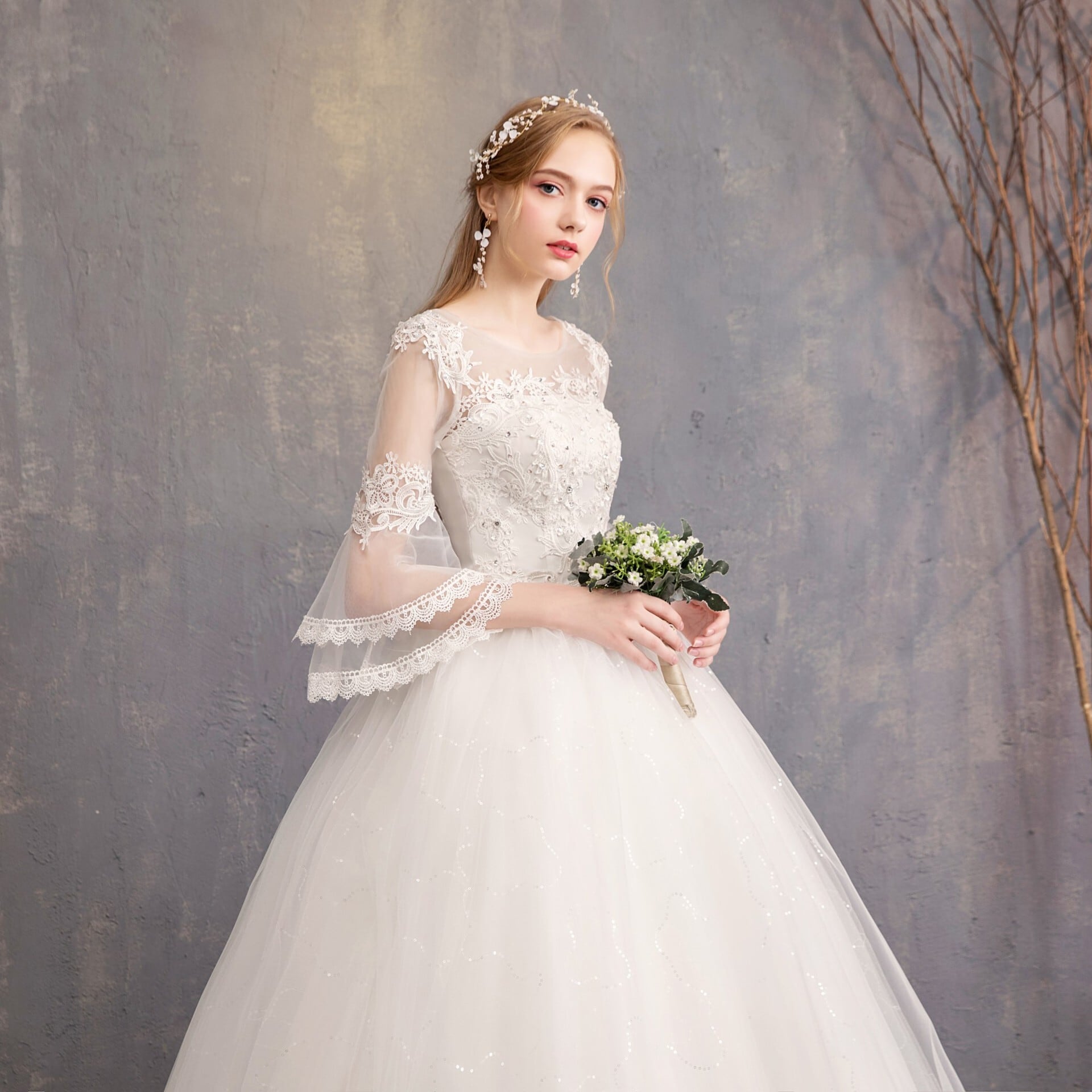 袖ありのデザインは、気になる二の腕をカバーし、自信を持ってお召し頂けるスタイルです。結婚式やフォトウェディング、カジュアルウェディングなど多彩なシーンで活躍する一着です♡