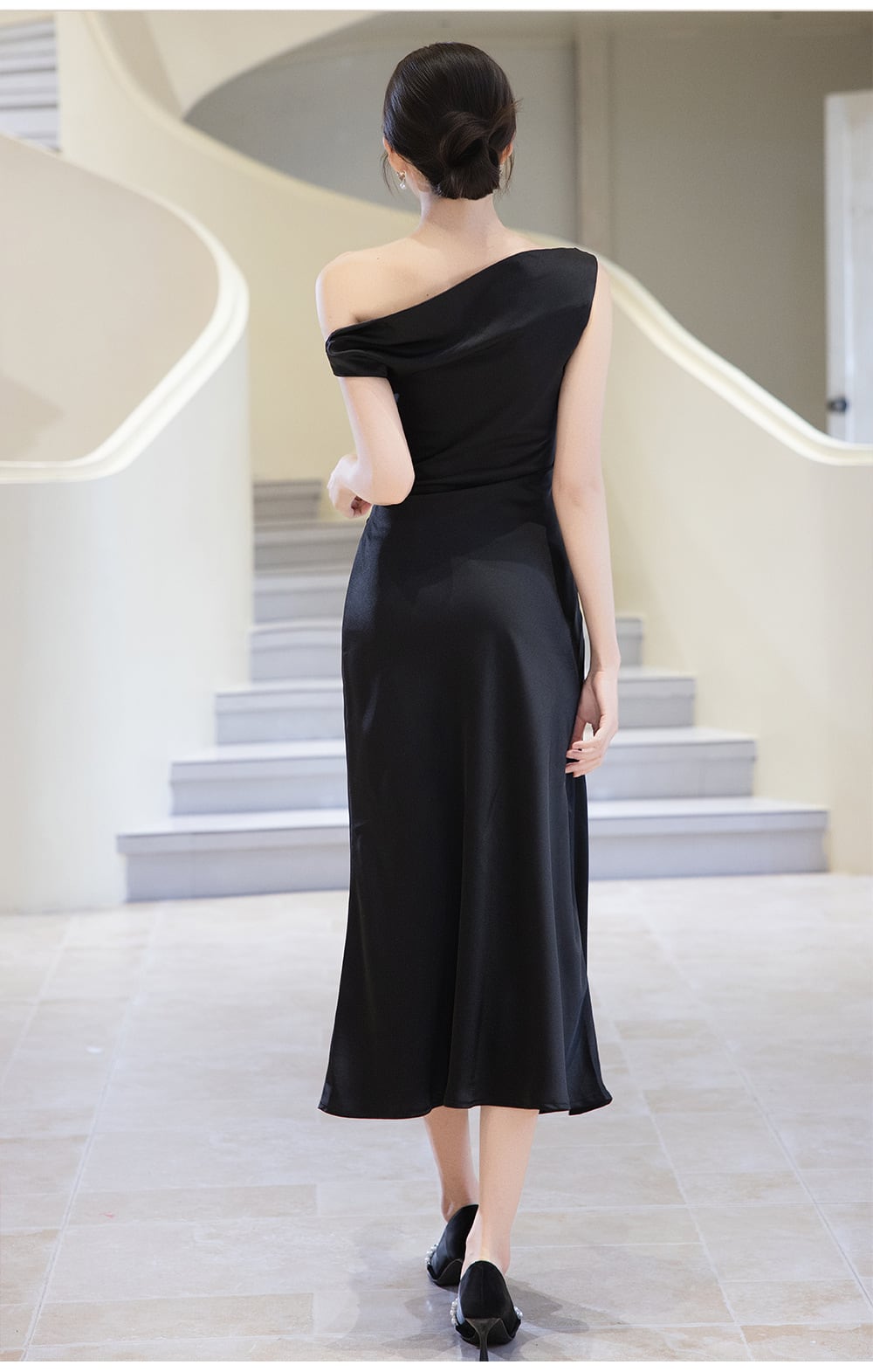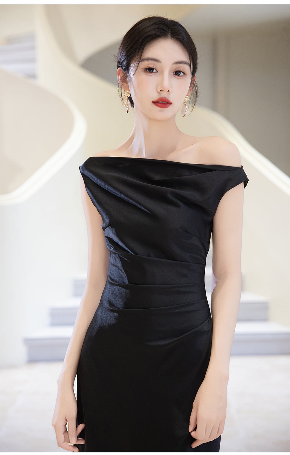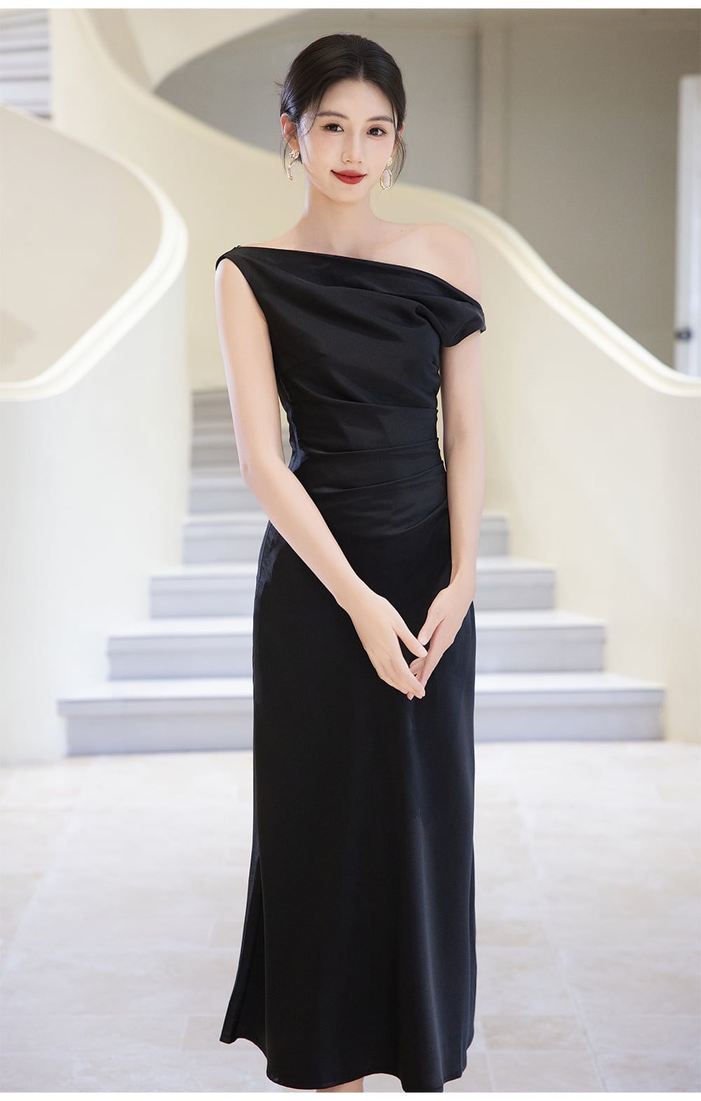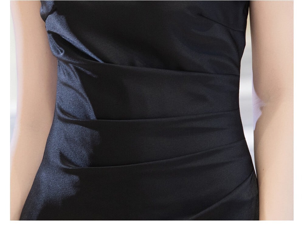 ウエストのギャザー使いで美しい曲線美を引き立て、シンプルながらも存在感のあるデザインが魅力。