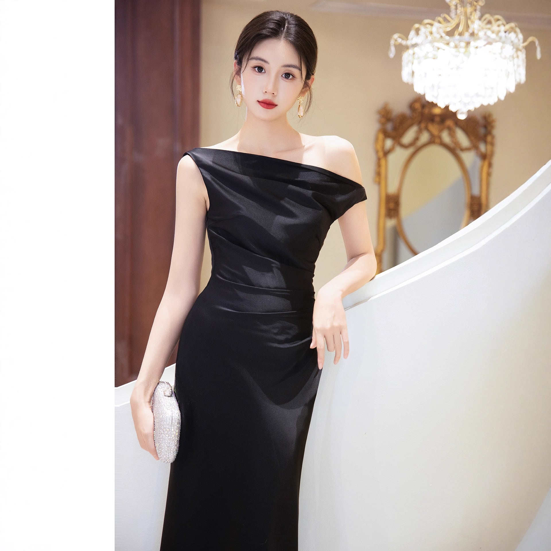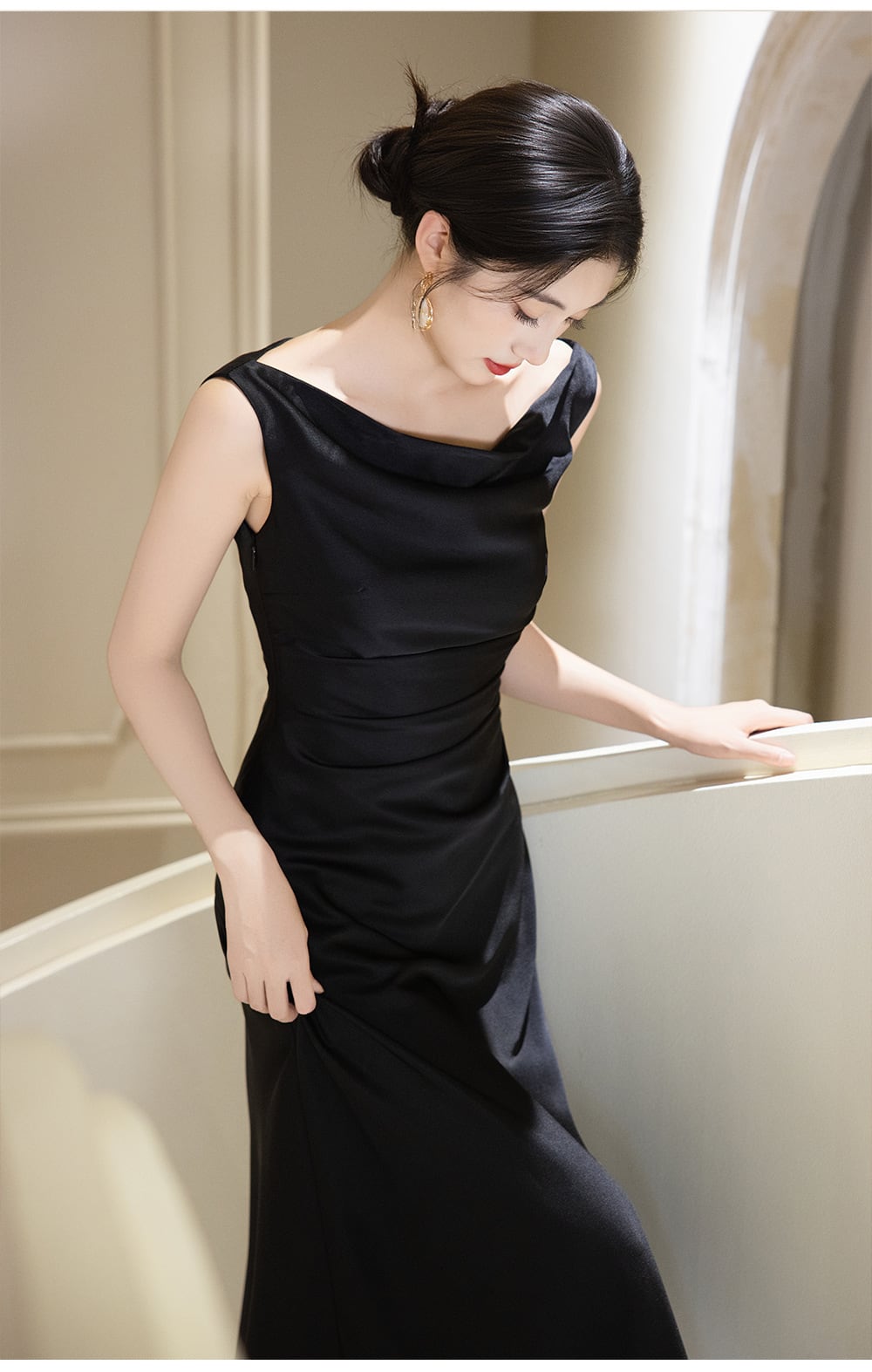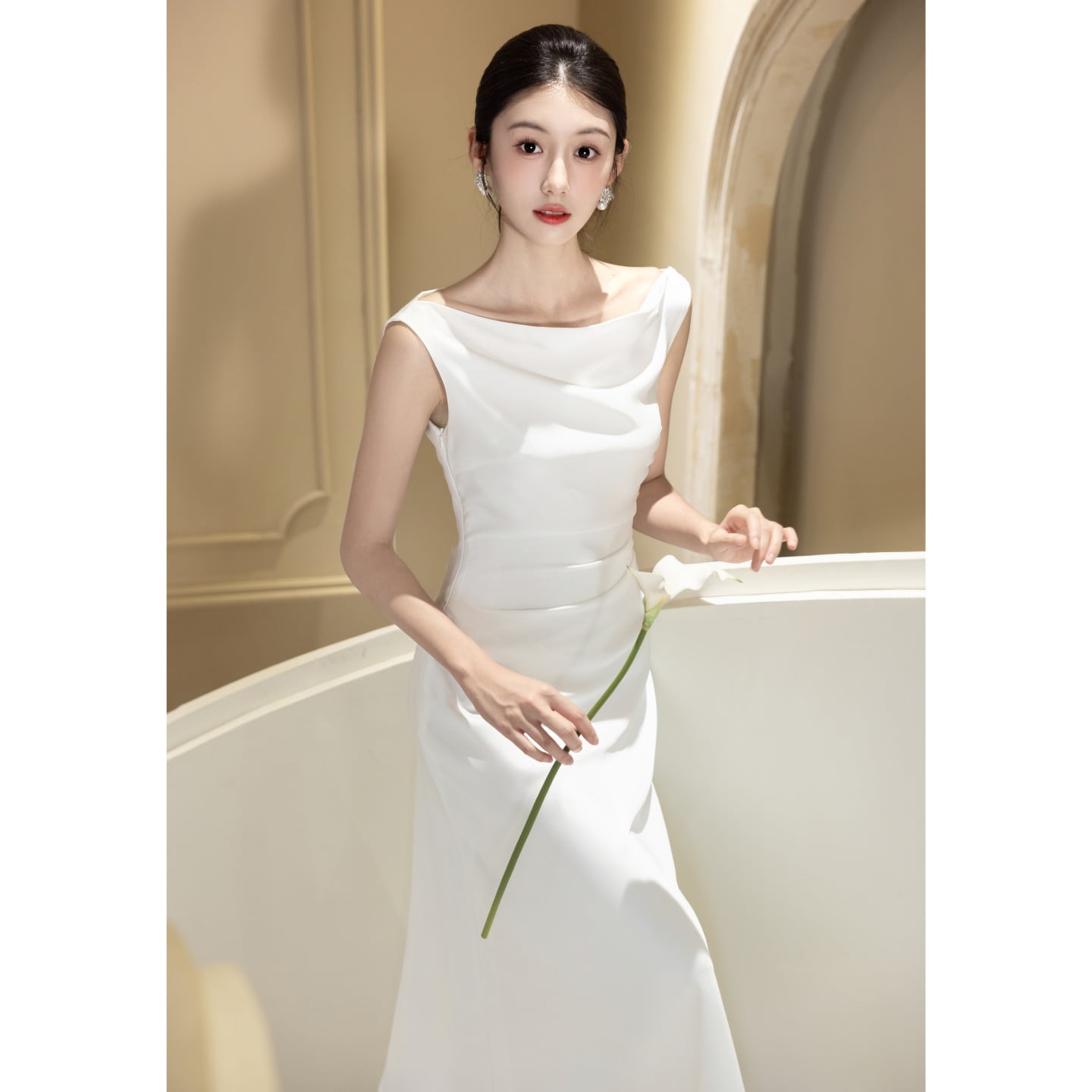 ウエストのギャザー使いで美しい曲線美を引き立て、シンプルながらも存在感のあるデザインが魅力。