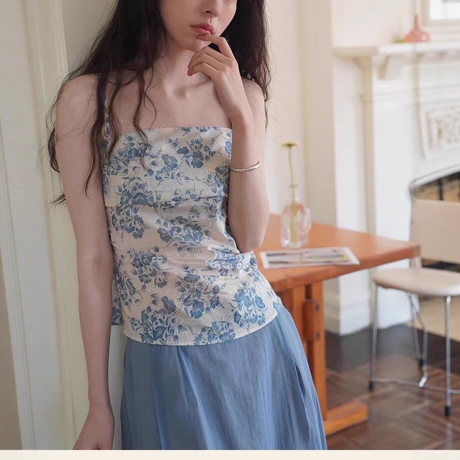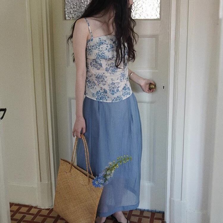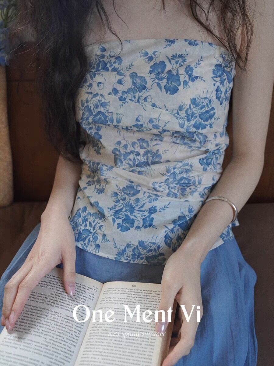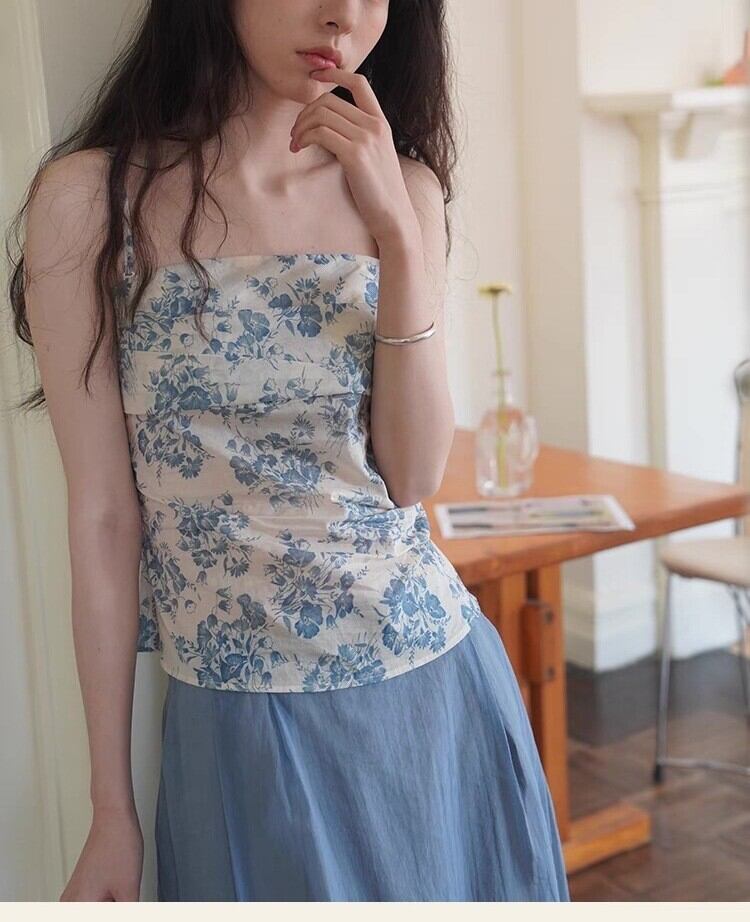 【セットアップ】 セットアップ レディース おしゃれ ママ コクーン スカート チューブトップ 春 夏 秋 20代 30代 40代 50代 きれいめ 花柄 ブルー 青 S M L