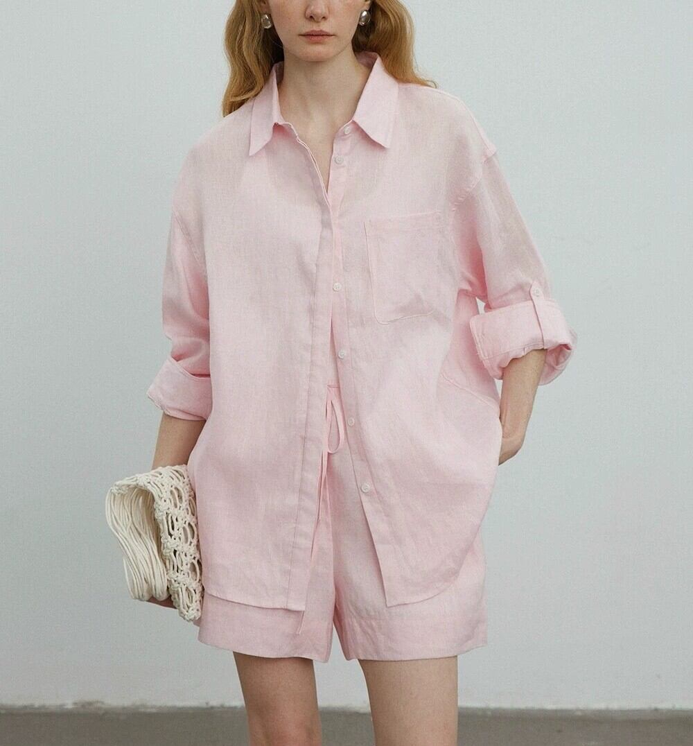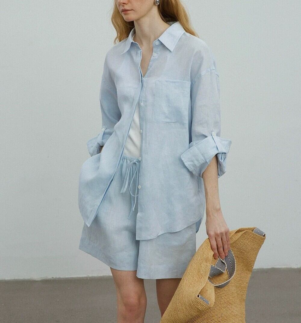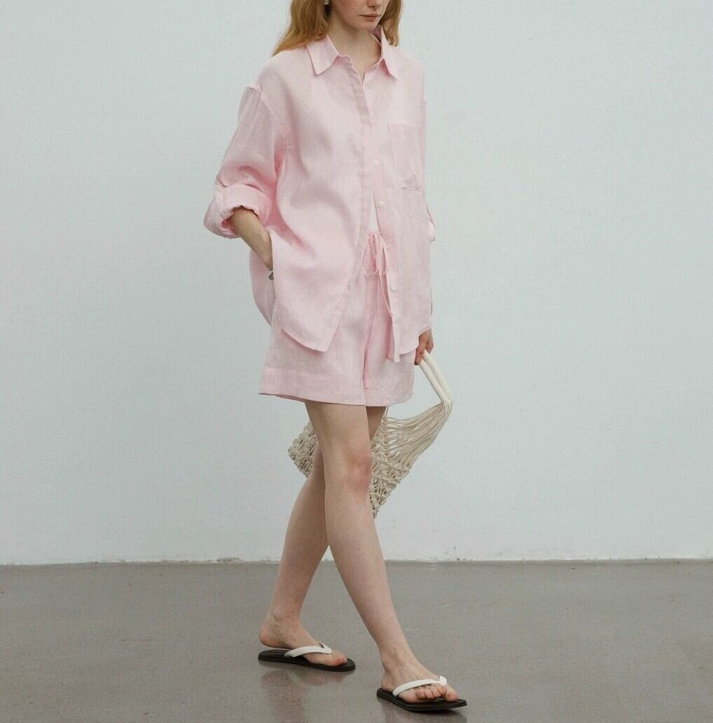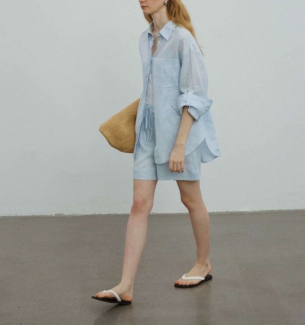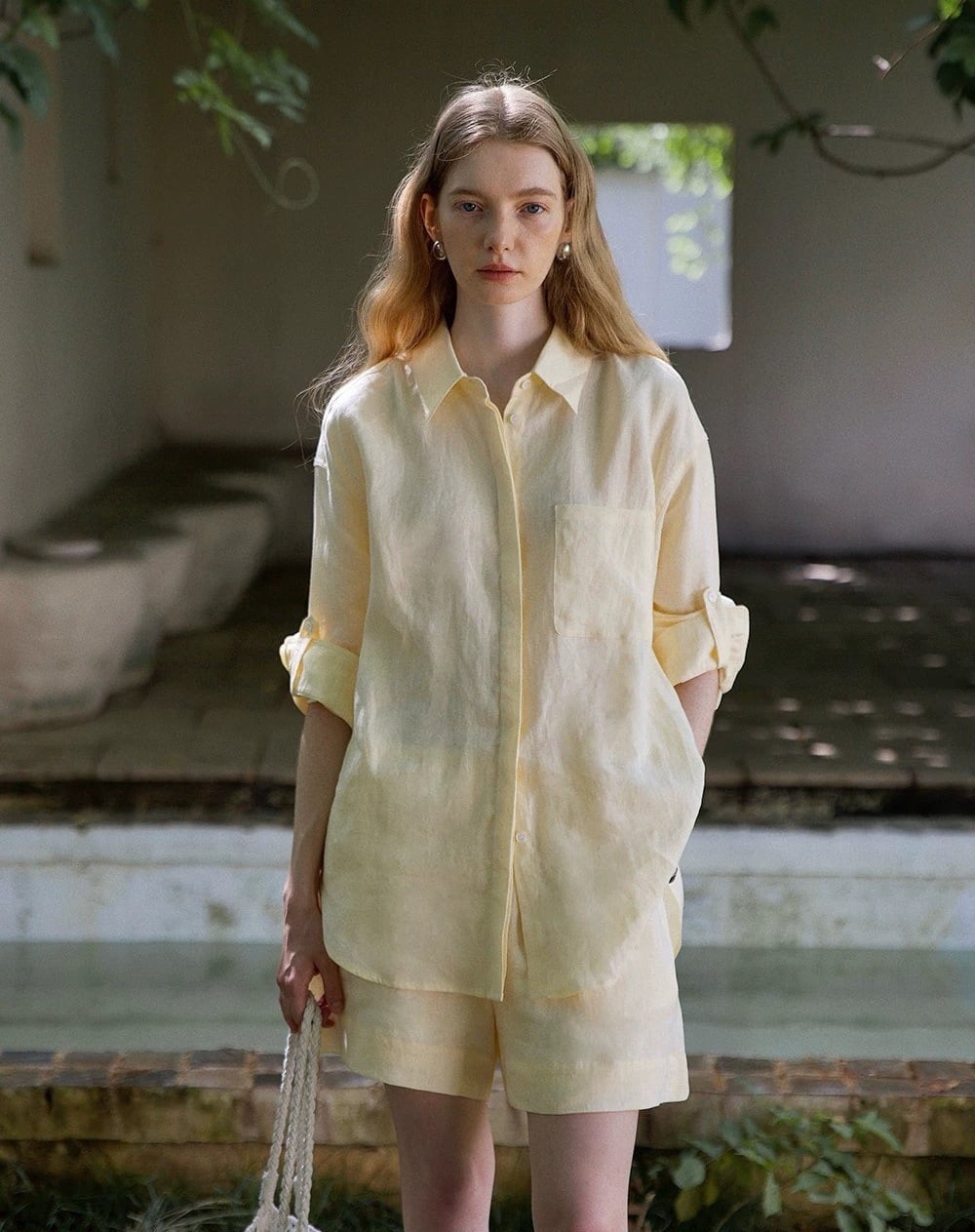 このシンプルなシャツとショートパンツのコンビネーションは、春・夏・秋のマルチシーズンで大活躍間違いなしです。