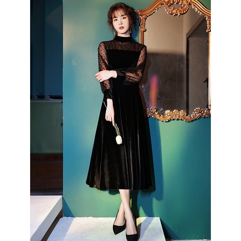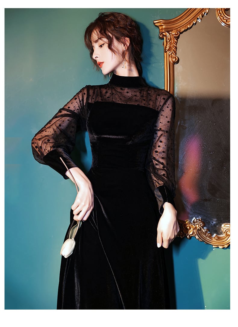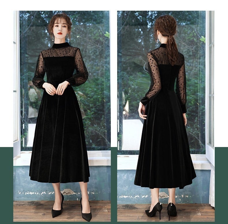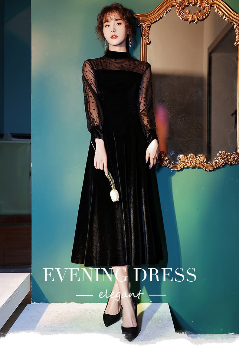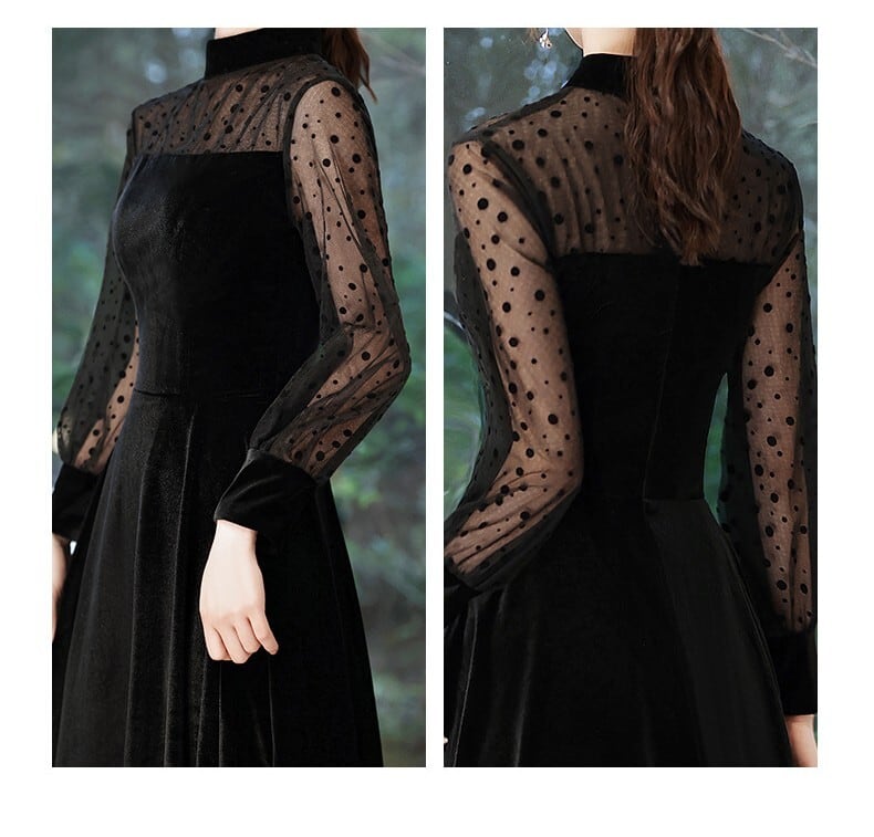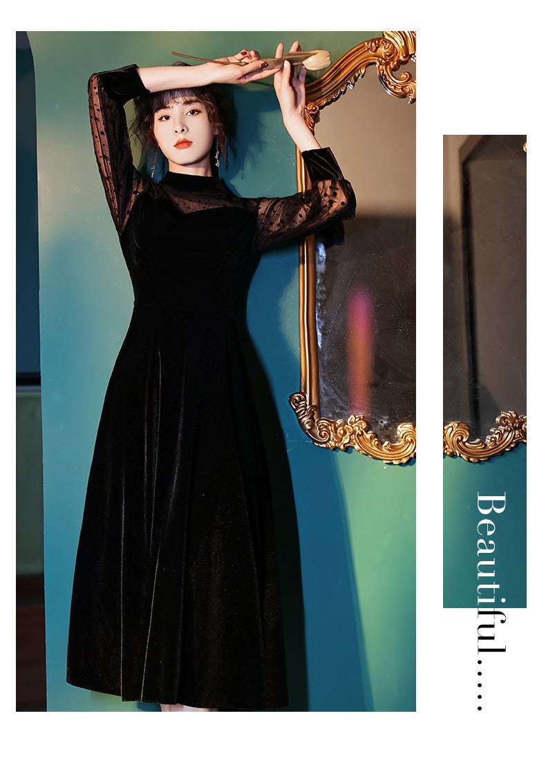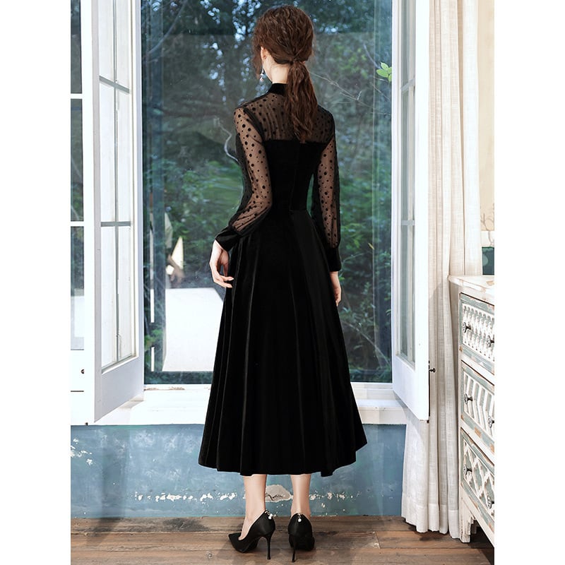 大人可愛いドット柄のベルベット素材のパーティードレスが新登場!✨