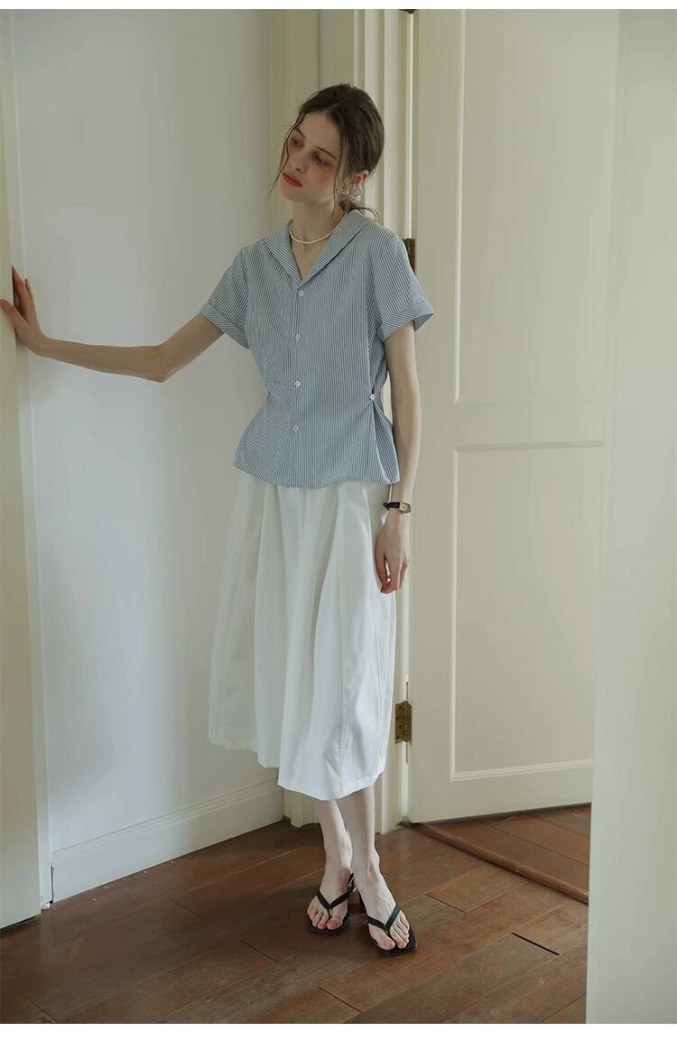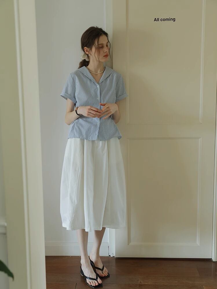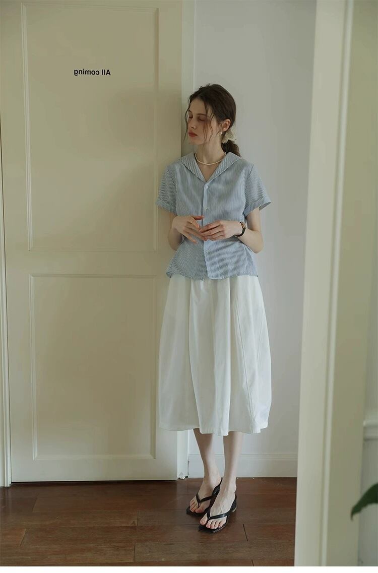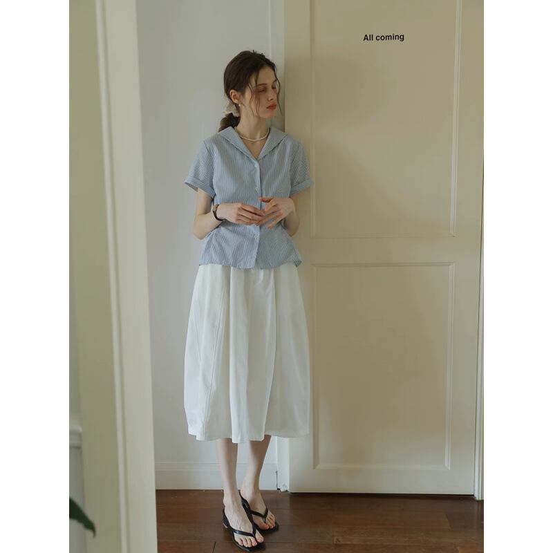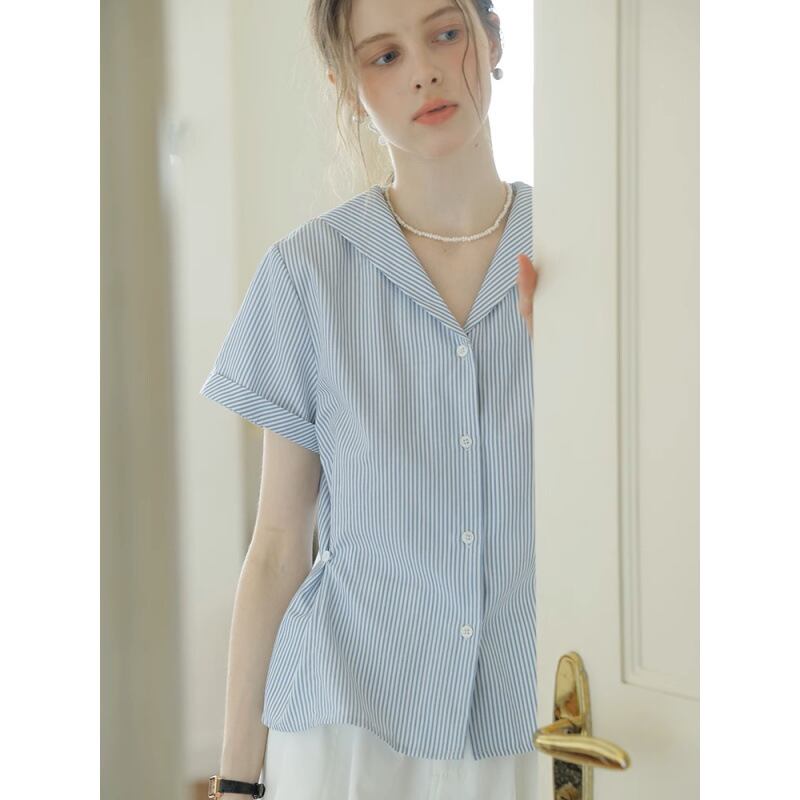 【シャツ】 シャツ レディース おしゃれ 大人 可愛い ブルー 青 ストライプ トップス シャツ ブラウス 韓国 ブラウス 春 夏 秋 20代 30代 40代 50代 シンプル オフィス レディース フォーマル 体型カバー きれいめ 半袖 S M L XL