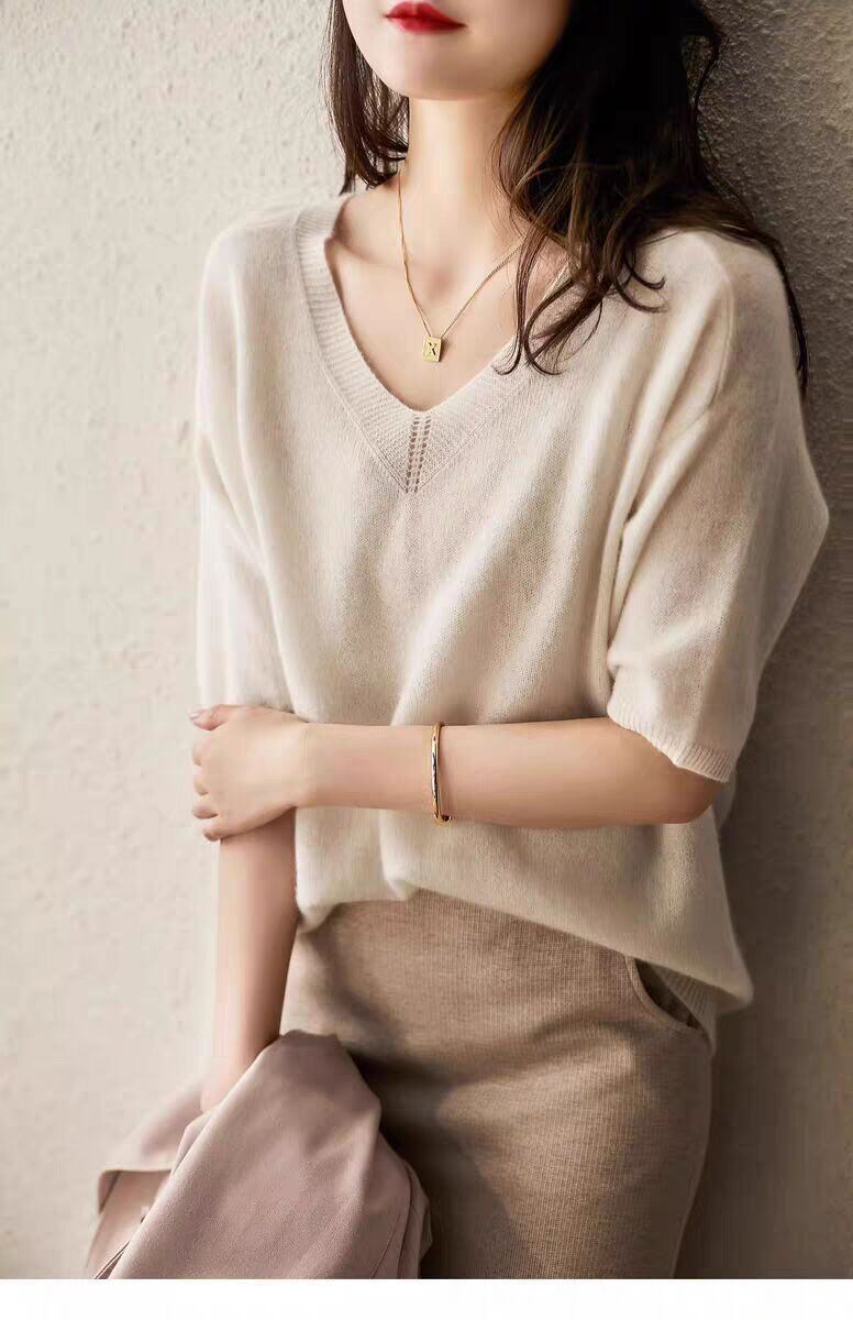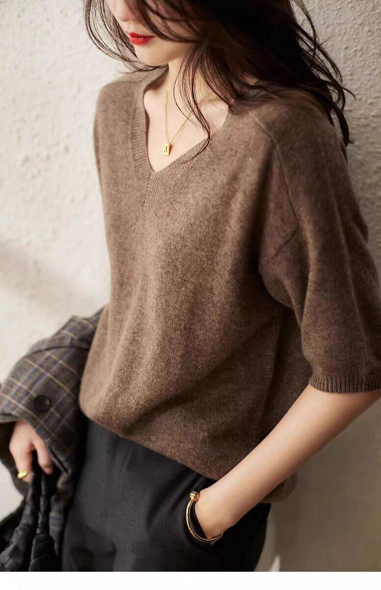 大人可愛いvネックの五分袖ニットセーターが新登場!✨