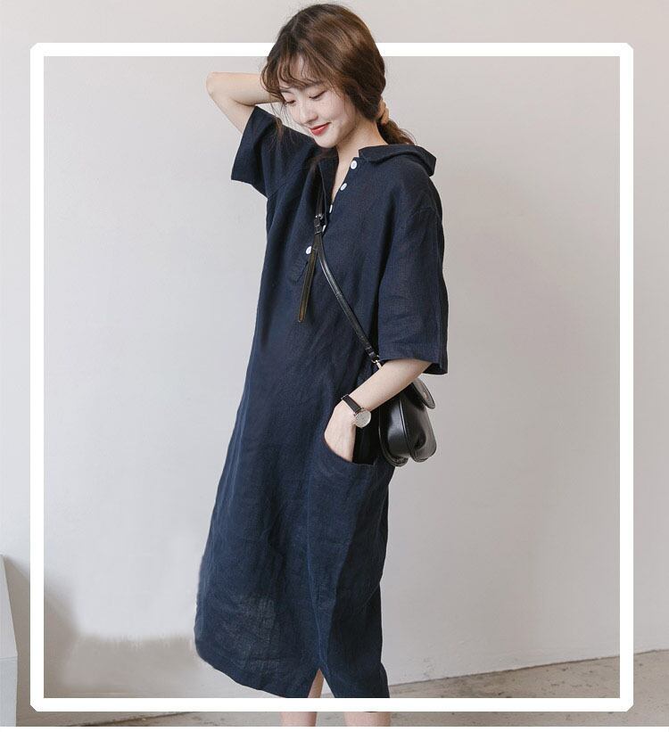 リネン&コットンのシンプルシャツワンピース。