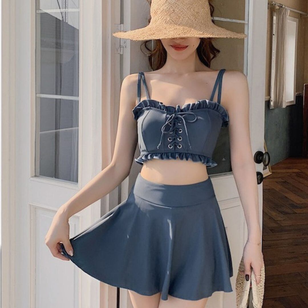 【水着】水着 ビキニ レディース 大人 かわいい おしゃれ 体型カバー 20代 30代 40代 2点セット 水着ビキニ 韓国 水着 マイクロビキニ スカート付き セクシー 水着 海 ビーチ プール リゾート スイムウェア ブラック 黒 ヘイズブルー 青 S M L XL