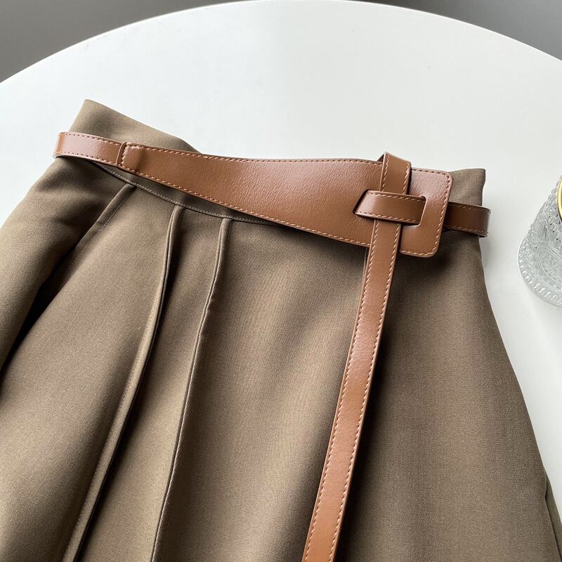 ベルト フェイクレザー エコレザー レディース 無地 レディース 春 夏 秋 冬 フェミニン デート 女子会 通勤 通学 オフィス カジュアル 無地 バックルなし ダークブラウン ワンサイズ