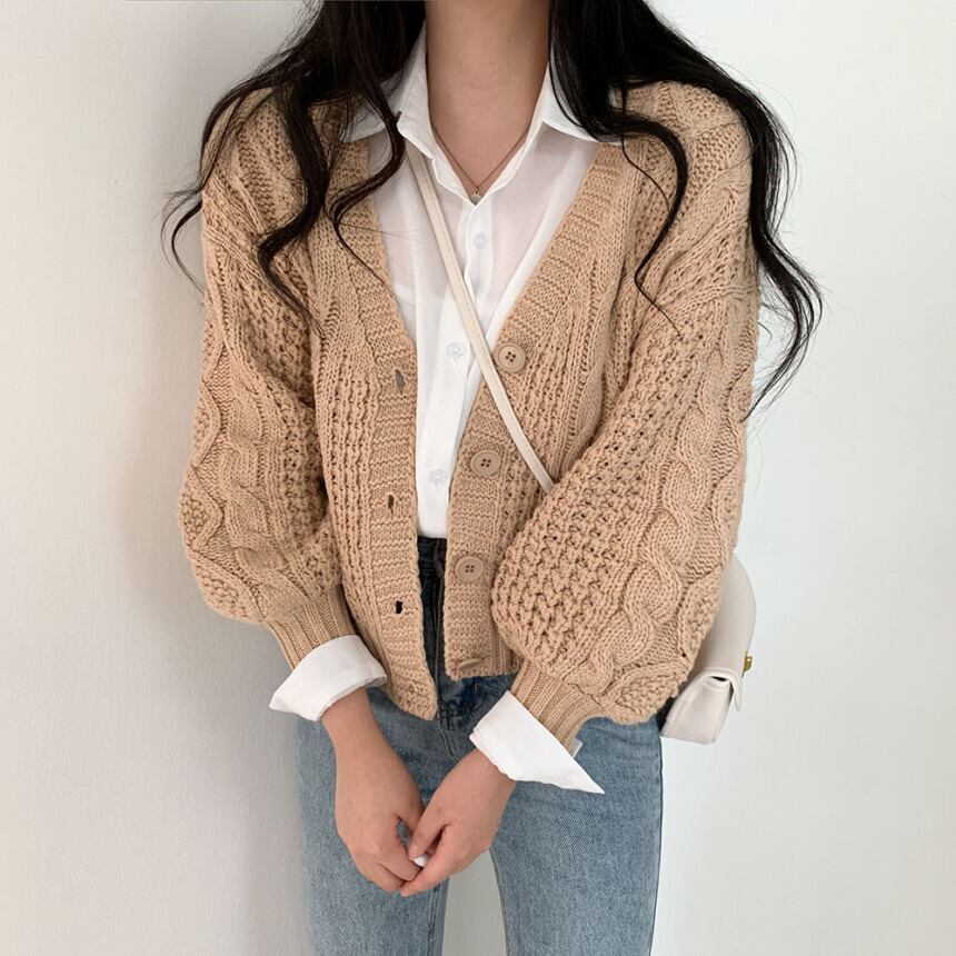 【カーディガン】 カーディガン レディース おしゃれ 秋 冬 20代 30代 40代 ニット カーディガン 厚手 カーディガン ショート丈 長袖 無地 トップス ベージュ アプリコット グレー フリーサイズ