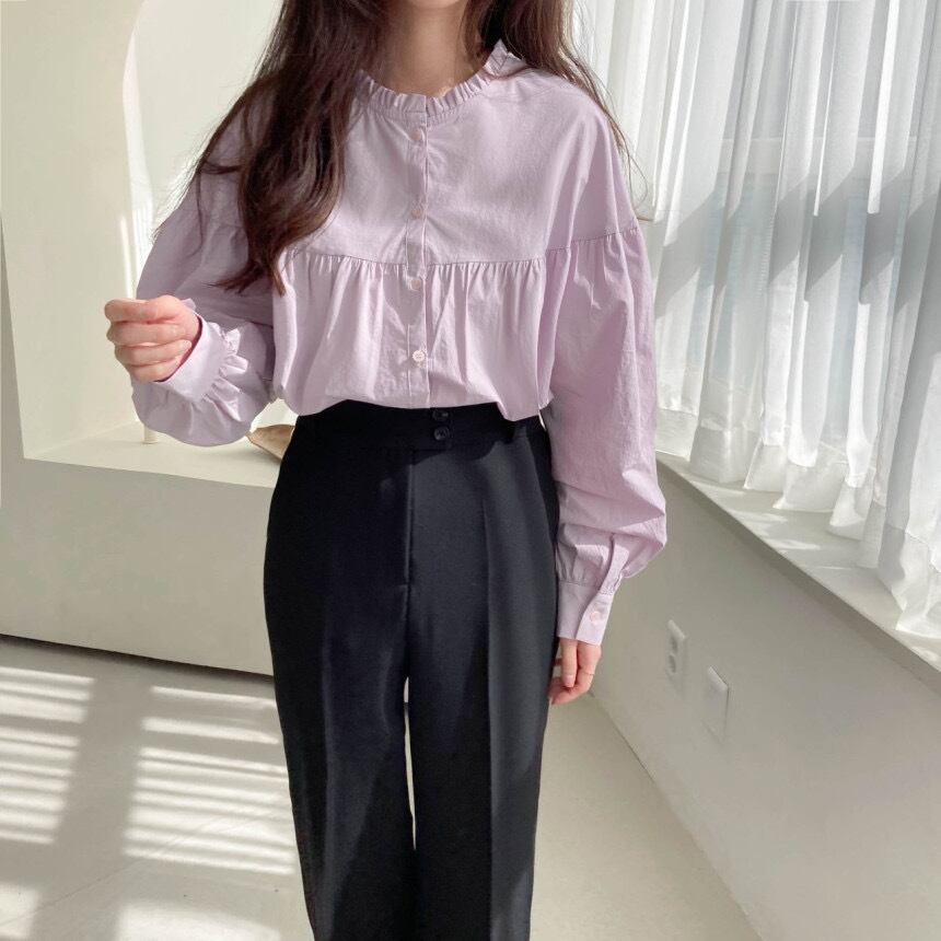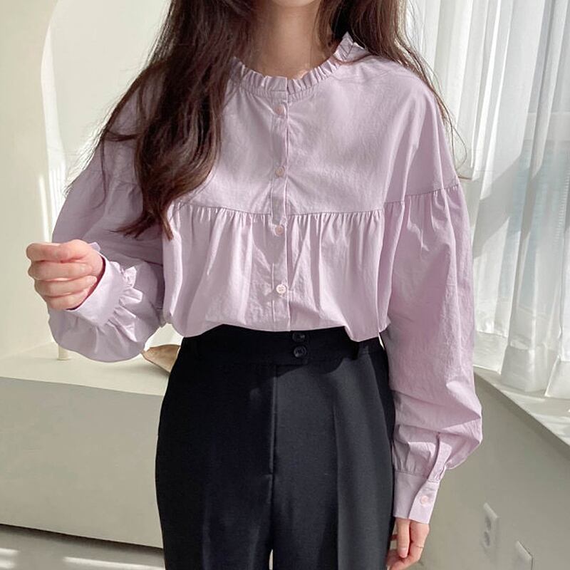 【ブラウス】ブラウス レディース 大人 可愛い トップス 無地 シャツ ブラウス 韓国 ブラウス 春 秋 冬 20代 30代 40代 シンプル フリル 白 オフィス レディース 長袖 フォーマル 体型カバー きれいめ ホワイト パープル 紫 フリーサイズ