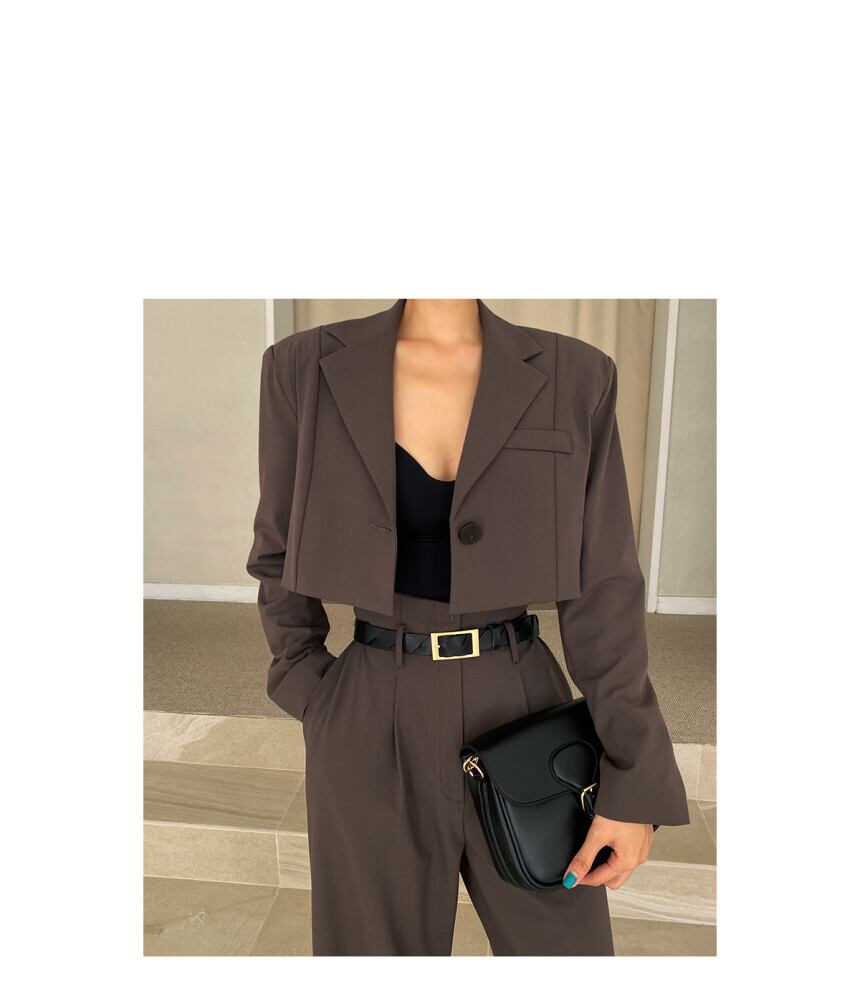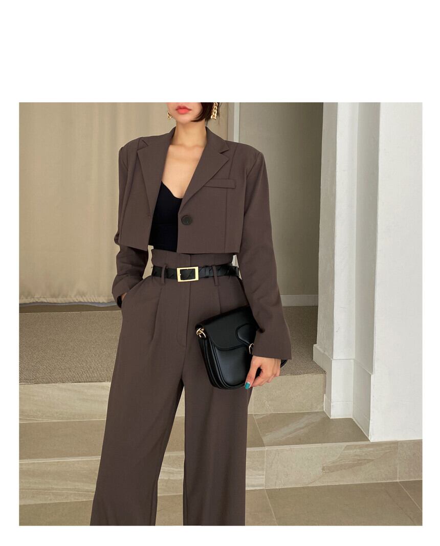 大人カッコいいクールなクロップドジャケット+パンツのセットアップ。