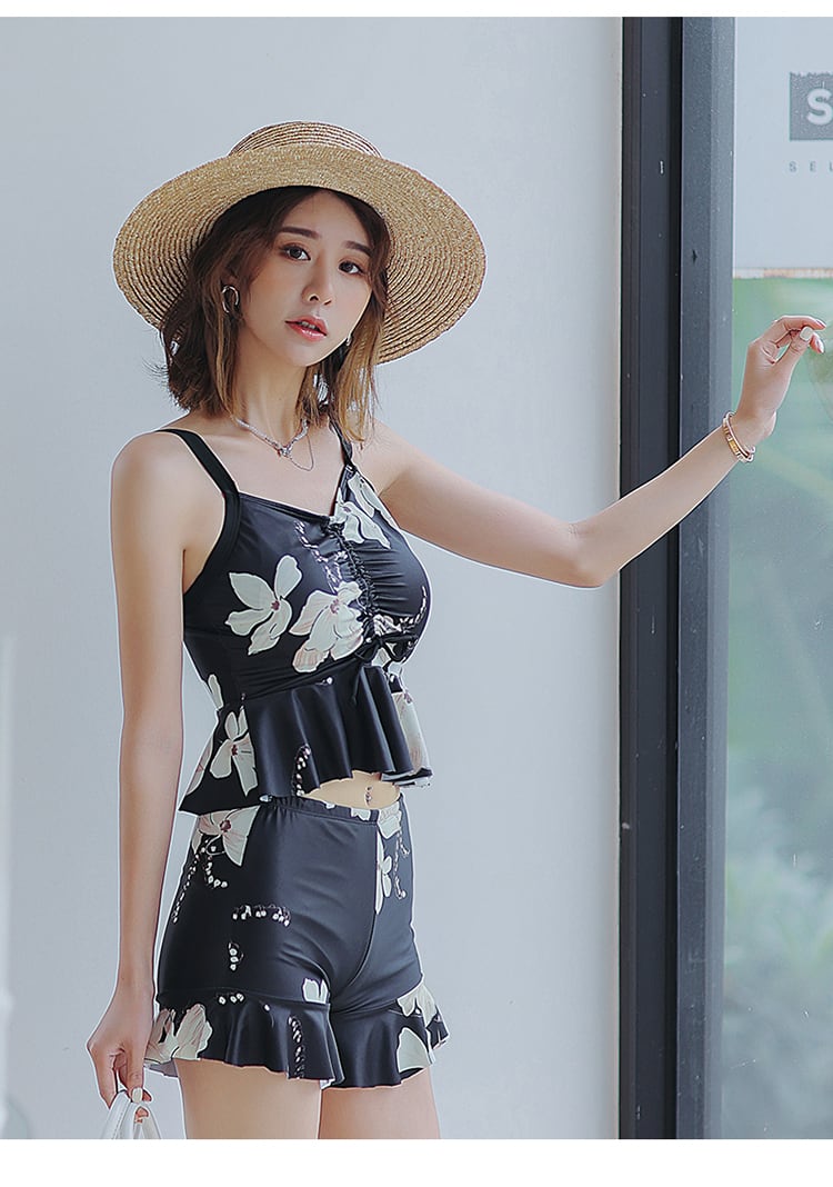 日焼け止め付きの大人っぽいフローラル柄の水着。