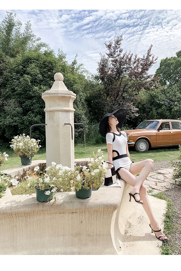 【水着】大きいサイズ ワンピース 水着 レディース 体型カバー 韓国 水着 かわいい おしゃれ 水着 ラッシュガード 20代 30代 40代 オールインワン 水着 ぽっちゃり 水着 ママ 着痩せ 海 ビーチ プール リゾート リボン カットアウト バイカラー ホワイト 白 ブラック 黒 S M L XL 2XL