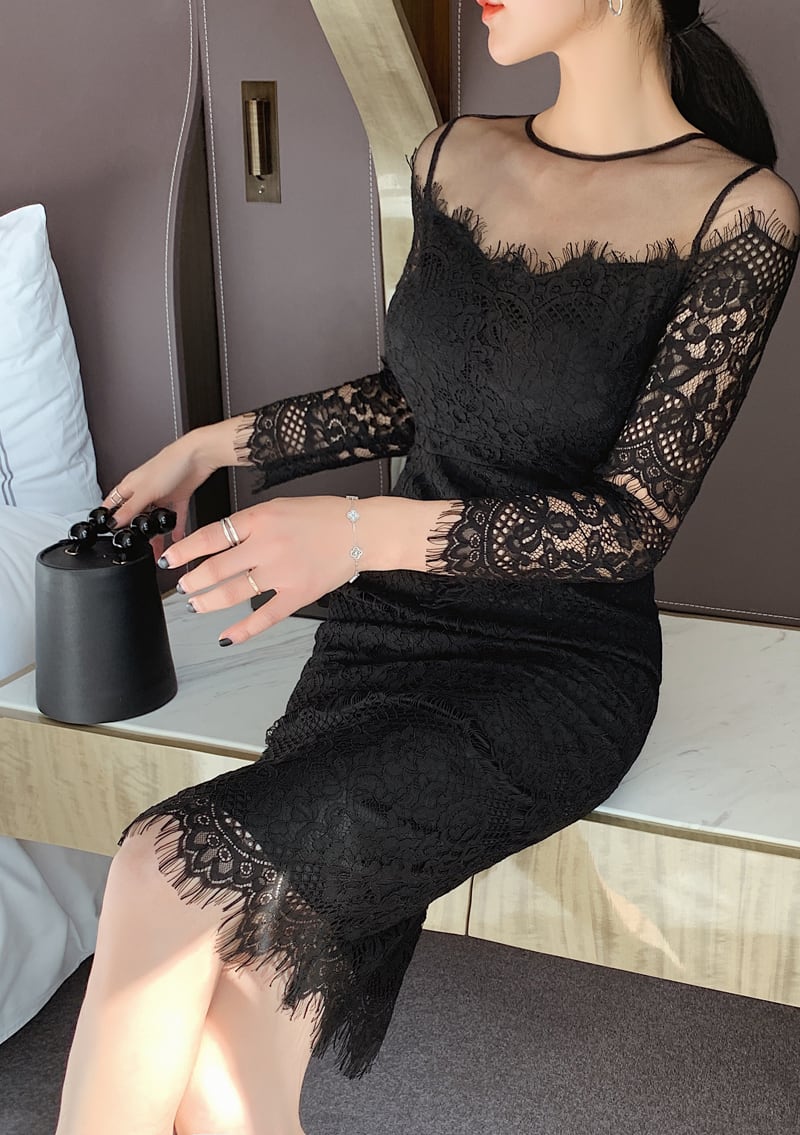 【パーティードレス】 パーティードレス 結婚式 お呼ばれドレス 結婚式のお呼ばれ ワンピース 黒 ブラック ロングワンピース 20代 30代 40代 フォーマルドレス 袖あり ドレス ミディ丈 膝丈 体型カバー フォーマルドレス ドレス 二次会 パーティー お呼ばれ フォーマル 総レース フォーマルワンピース シンプル おしゃれ ブラック アプリコット S M L XL