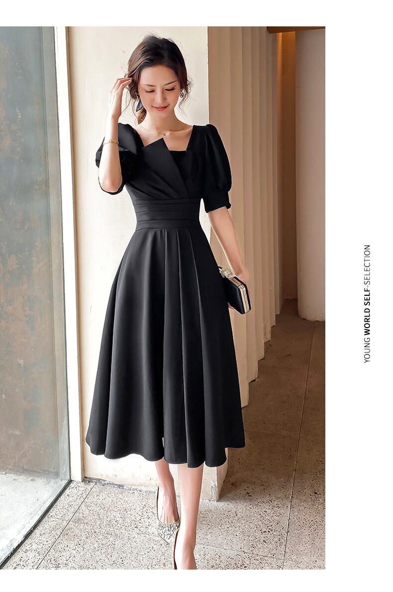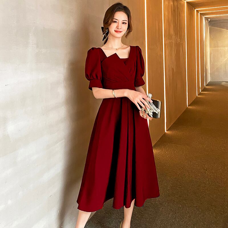 パフスリーブのお袖がエレガントなパーティドレス。