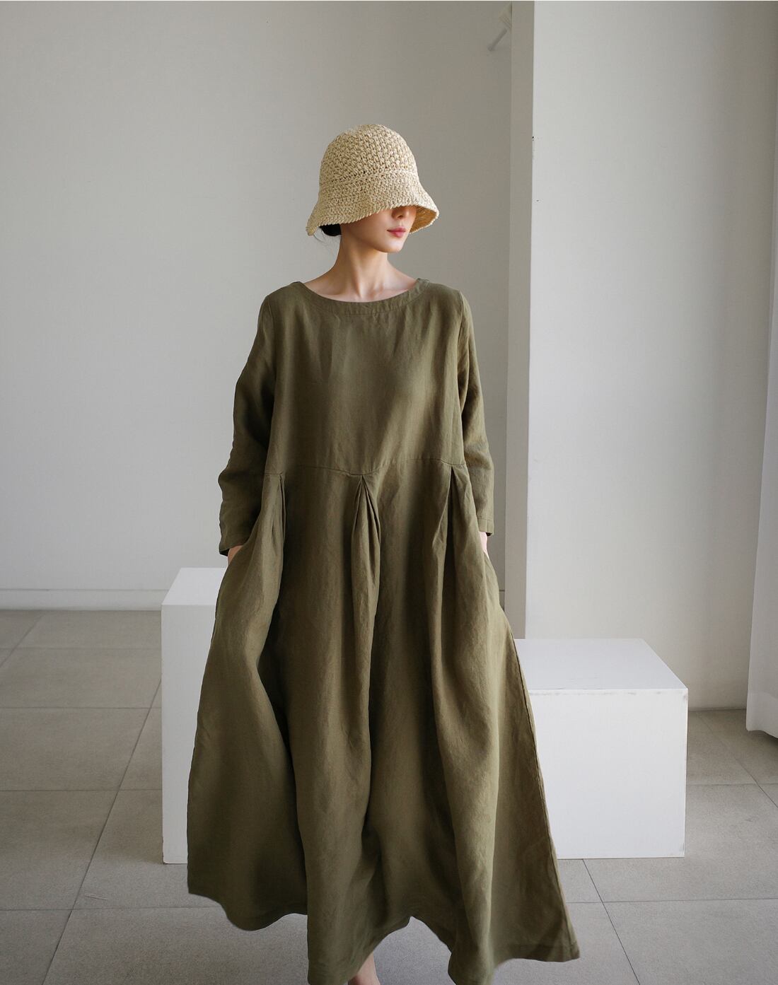 【ワンピース】 ワンピース レディース 春 秋 おしゃれ 20代 30代 40代 無地 ロングワンピース 春秋 長袖 七分袖 マタニティ ワンピース ロング 韓国 ワンピース ドレス ワンピース 大人 可愛い カジュアル ベージュ ダークグリーン 緑 ブラック 黒 S M L XL