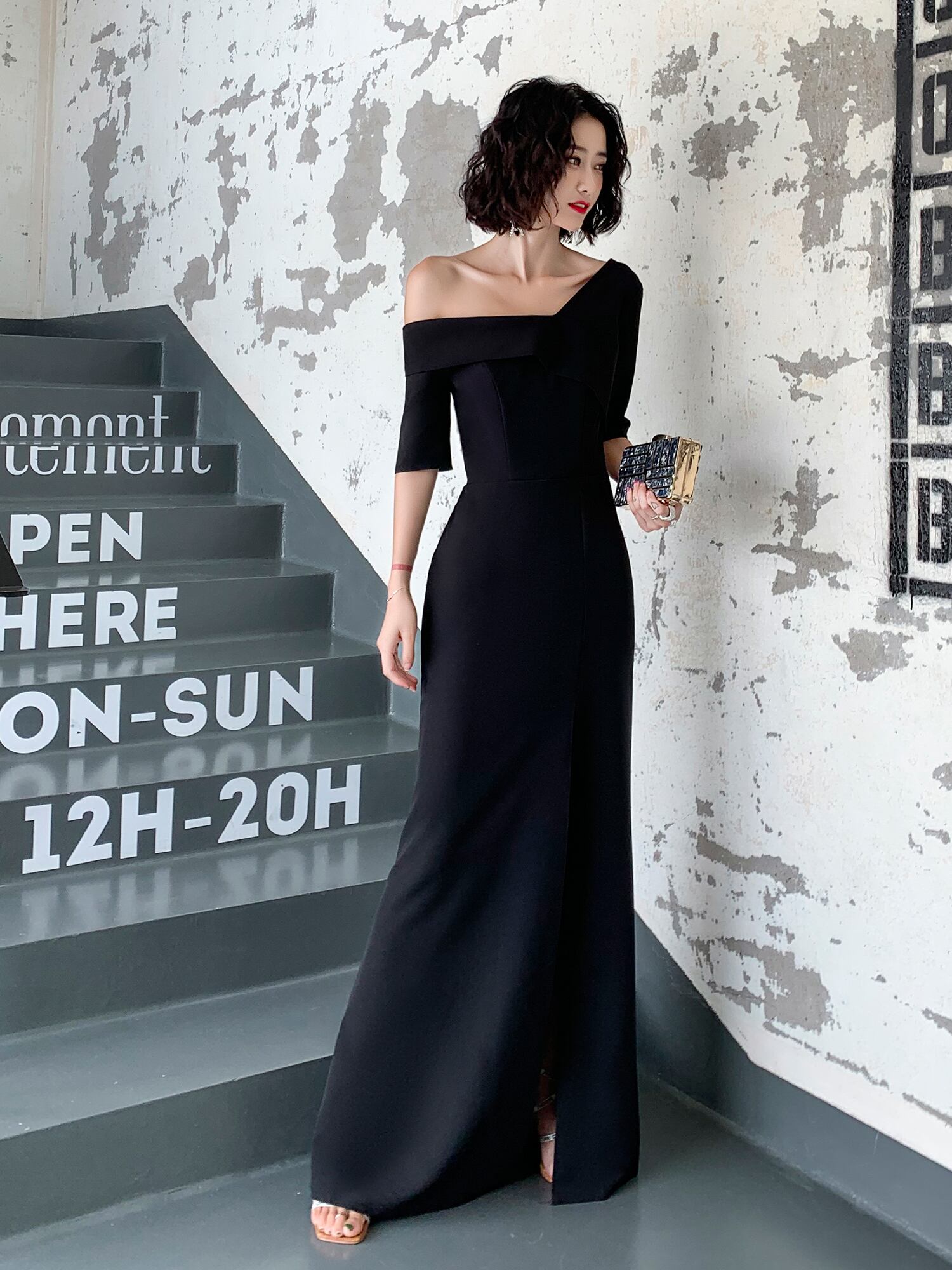 パーティードレス 結婚式 ワンピース ロング丈 ワンショルダー ワンショル お呼ばれドレス 結婚式のお呼ばれ フォーマルドレス 二次会 お呼ばれ 20代 30代 40代 袖あり お呼ばれ 黒 フォーマル 体型カバー フォーマルワンピース 通勤