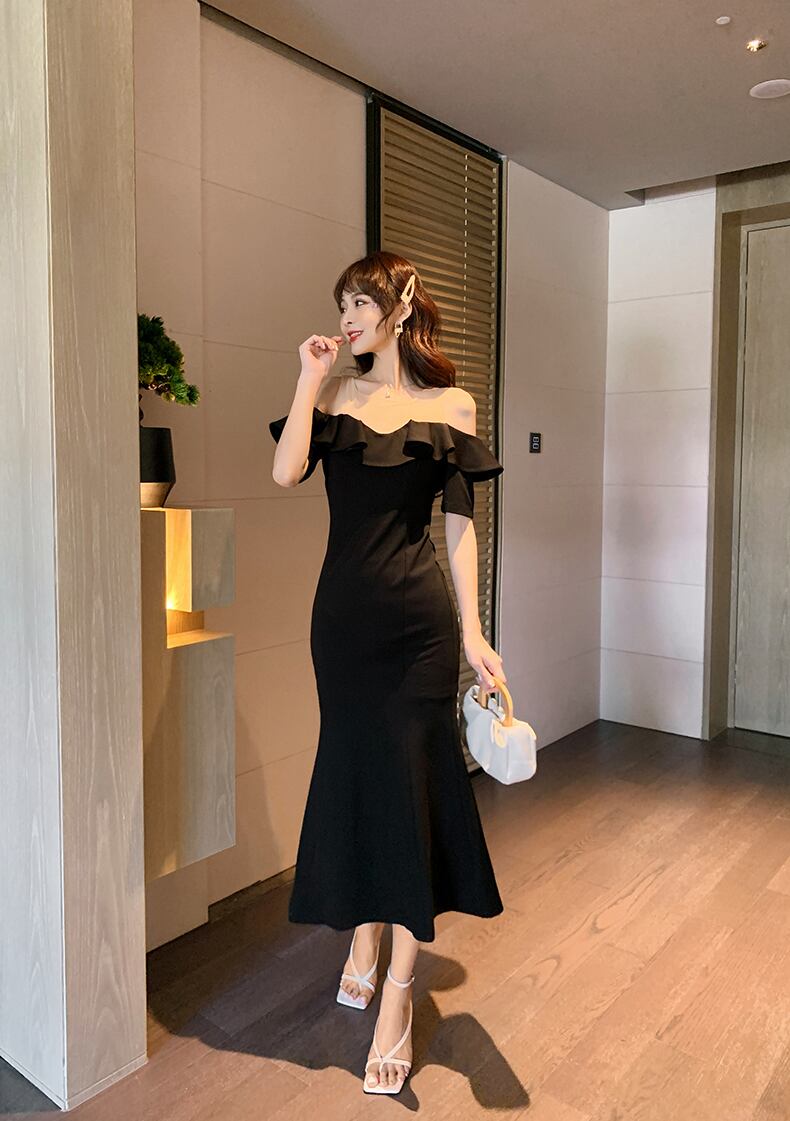 【パーティードレス】パーティードレス 結婚式 卒業式 謝恩会 成人式 同窓会 お呼ばれドレス 結婚式のお呼ばれ ワンピース 黒 ブラック ロングワンピース 20代 30代 40代 フォーマルドレス 袖あり オフショルダー ミモレ丈 体型カバー お呼ばれ 二次会 フォーマルワンピース シンプル おしゃれ S M L XL