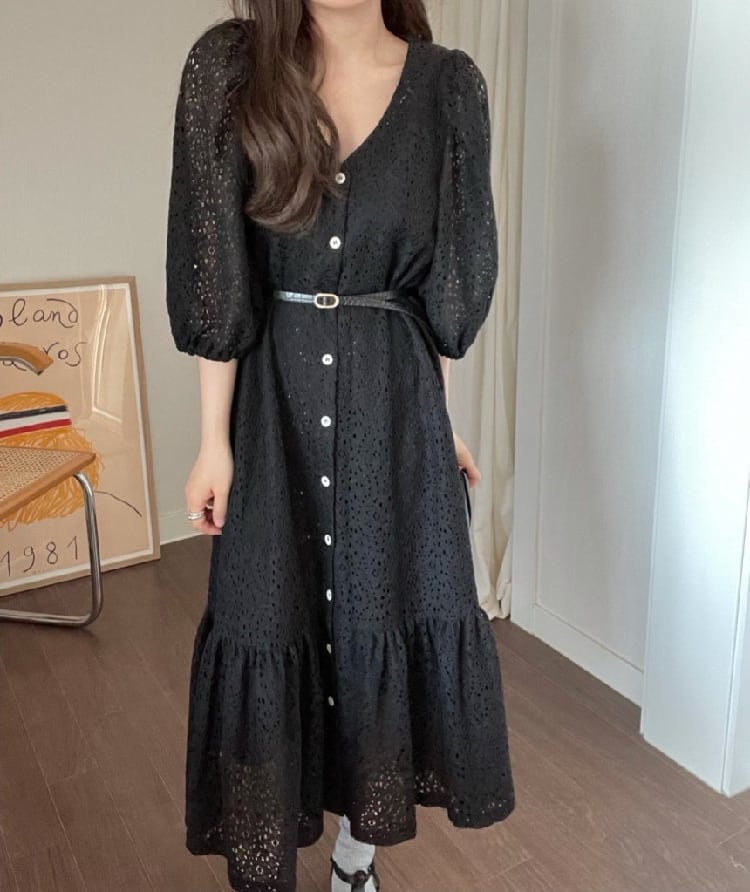 【ワンピース】 ワンピース レディース 春 夏 秋 おしゃれ 20代 30代 40代 無地 ロングワンピース 春秋 半袖 五分袖 ロング 韓国 ワンピース ドレス ワンピース 大人 可愛い きれいめ レトロ ベルト付き アプリコット ブラック 黒 フリーサイズ
