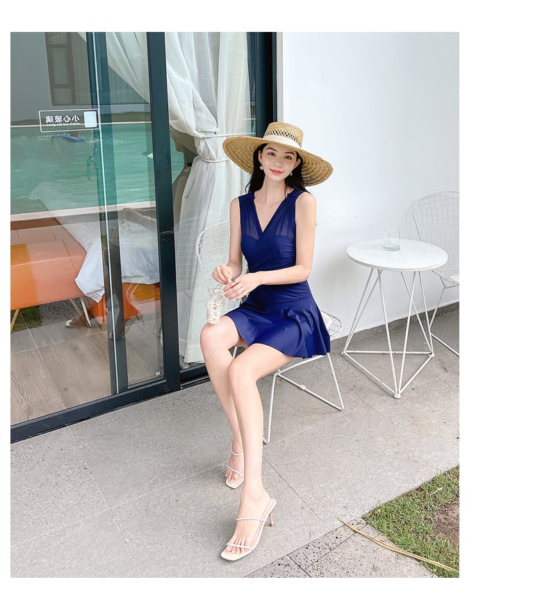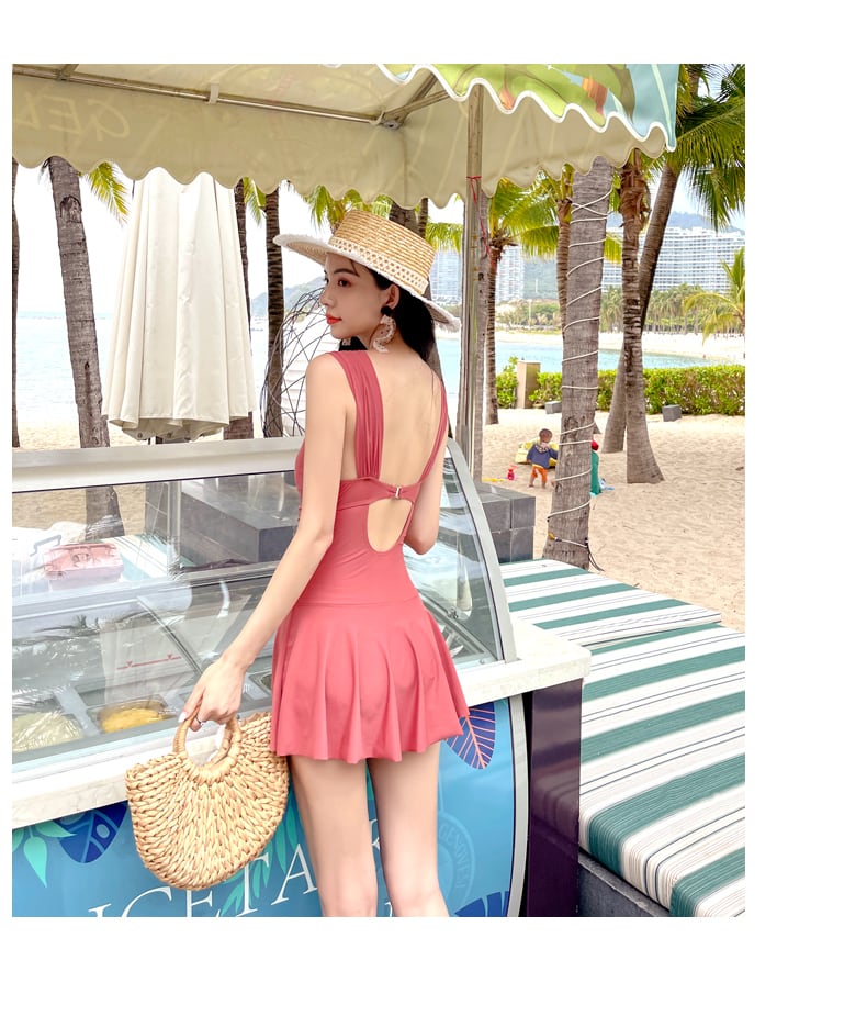 人気のウエストクロスデザインのワンピース水着。