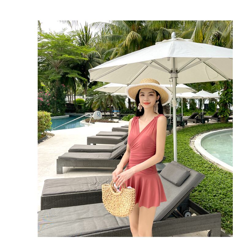 【水着】大きいサイズ ワンピース 水着 レディース 体型カバー 韓国 水着 かわいい おしゃれ 水着 20代 30代 40代 オールインワン 水着 ぽっちゃり 水着 ママ 着痩せ 海 ビーチ プール リゾート スカート レッド 赤 ネイビー 青 M L XL 2XL