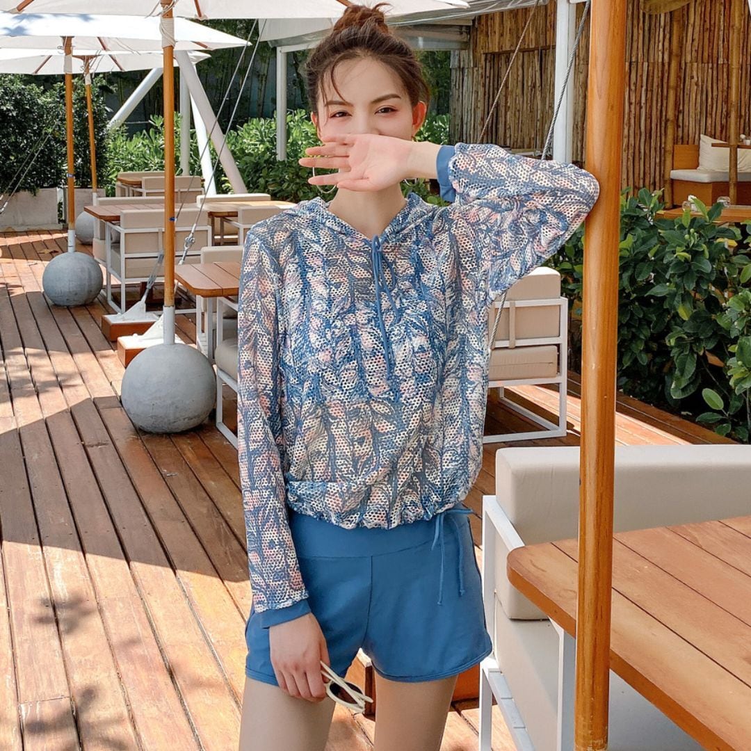 【水着】 大きいサイズ 水着 タンキニ 体型カバー ラッシュガード レディース 3点セット かわいい おしゃれ 20代 30代 40代 ママ 水着 韓国 水着 パンツ 海 ビーチ プール リゾート スイムウェア グレーブルー ボタニカル M L XL 2XL