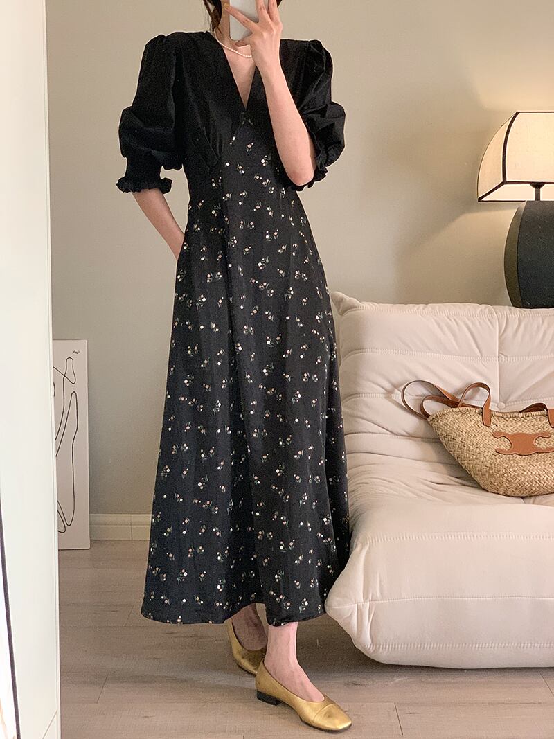 【ワンピース】 ワンピース レディース 春 夏 秋 おしゃれ 20代 30代 40代 花柄 ロングワンピース 春秋 五分袖 半袖 ロング 韓国 ワンピース ドレス ワンピース 大人 可愛い カジュアル S M L