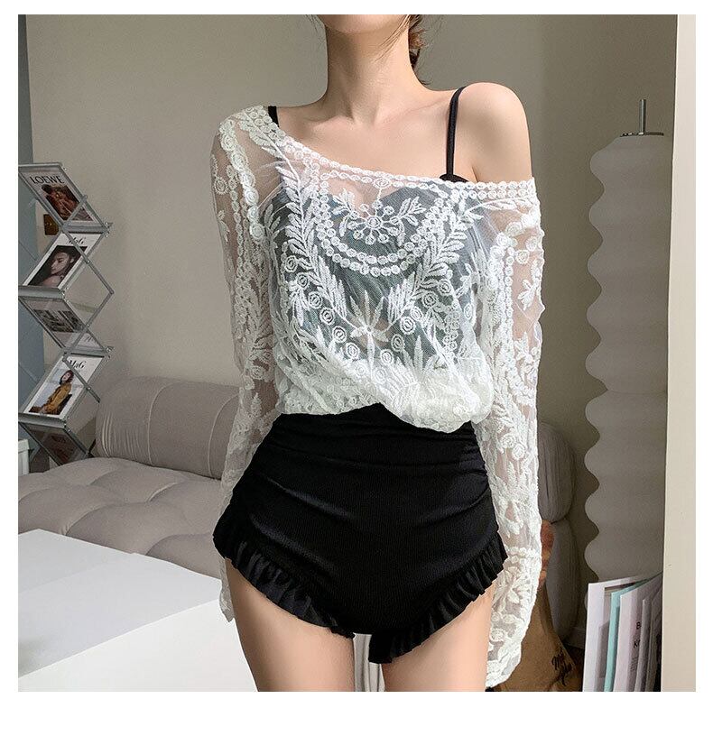 【水着】大きいサイズ ワンピース 水着 レディース 体型カバー 韓国 水着 かわいい おしゃれ 水着 20代 30代 40代 オールインワン 水着 ぽっちゃり 水着 ママ 2点セット ラッシュガード ママ 着痩せ 海 ビーチ プール リゾート レース ブラック 黒 ブルー 青 S M L XL 2XL