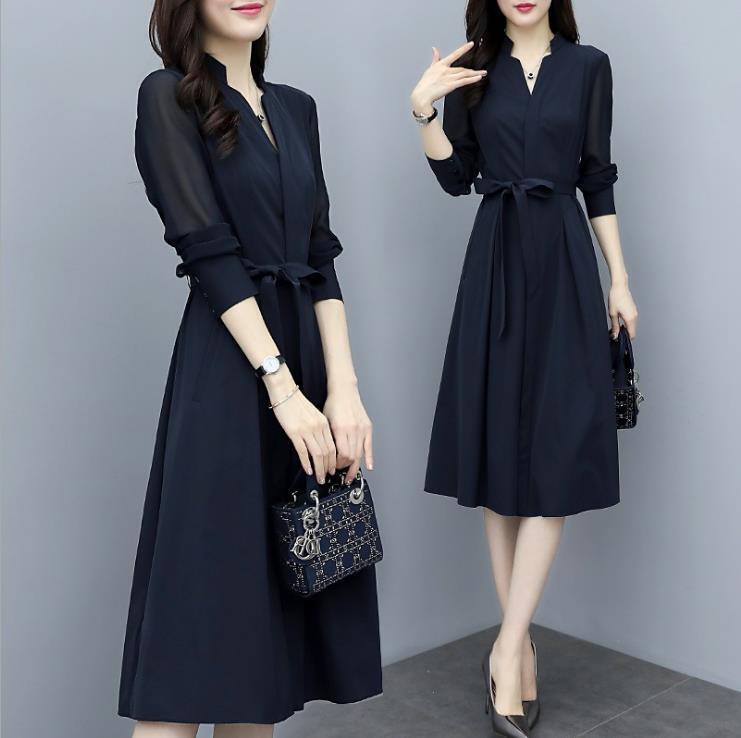 【ワンピース】 大きいサイズ ワンピース レディース おしゃれ 20代 30代 40代 春 夏 秋 ひざ丈 膝丈 ワンピース 入園式 卒園式 入学式 卒業式 春秋 無地 長袖 aライン ワンピース ワンピースドレス 韓国 ワンピース ドレス ワンピース 大人 可愛い きれいめ ネイビー 青 S M L XL 2XL