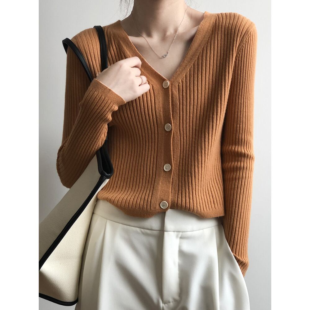 【カーディガン】シンプルリブニットカーデ /ワンサイズ