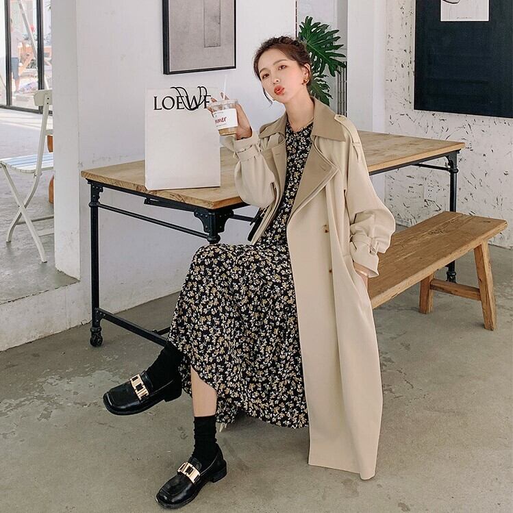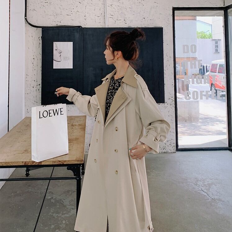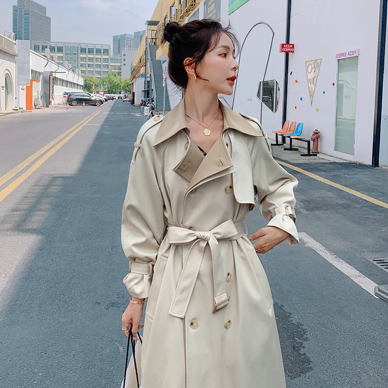 おしゃれ度の高いバイカラートレンチコート。