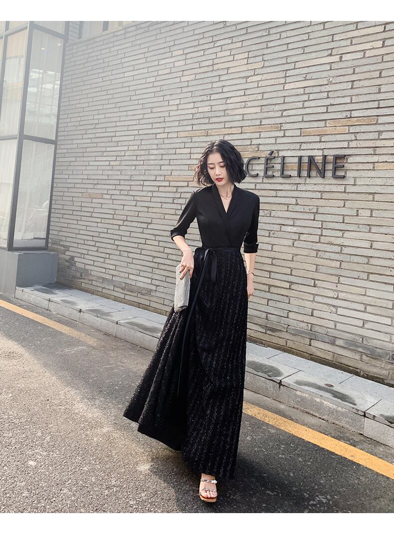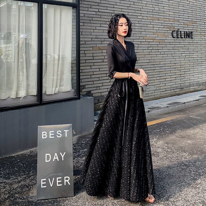 【パーティードレス】大きいサイズ パーティードレス 結婚式 お呼ばれドレス 結婚式のお呼ばれ ワンピース 黒 ブラック ロングワンピース 20代 30代 40代 フォーマルドレス 袖あり ロング 体型カバー お呼ばれ 二次会 フォーマルワンピースシンプル かっこいい おしゃれ 個性的 S M L XL 2XL