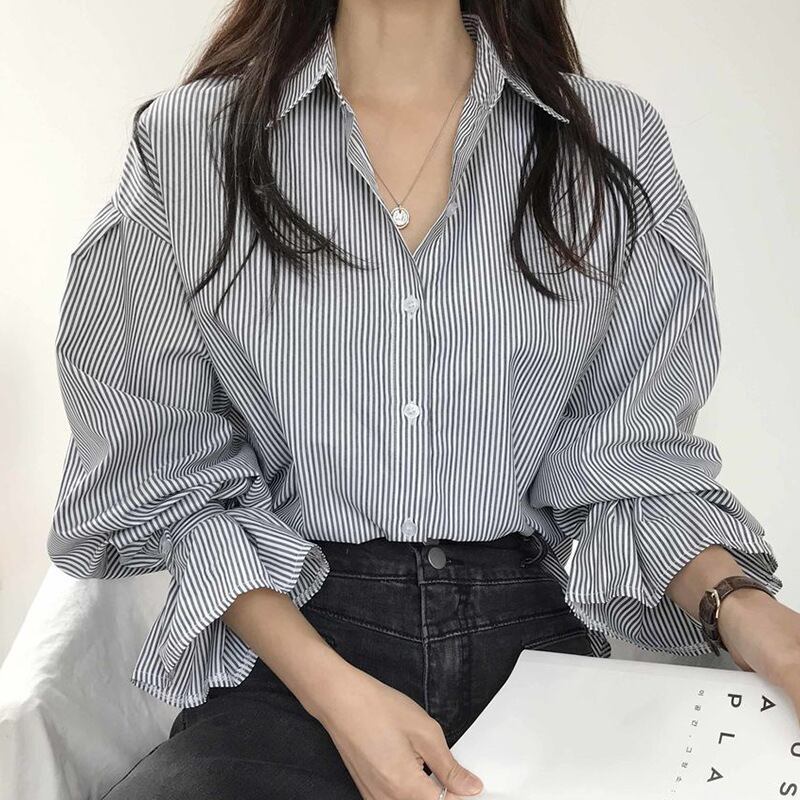 【ブラウス】大きいサイズ ブラウス レディース 大人 可愛い トップス ストライプ シャツ ブラウス 韓国 ブラウス 春 秋 冬 20代 30代 40代 シンプル オフィス 通勤 レディース 長袖 七分袖 フォーマル 体型カバー きれいめ ブルー 青 ブラック 黒 フリーサイズ