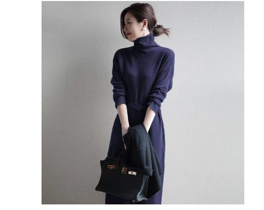 エレガントなミディ丈のニットワンピ。
