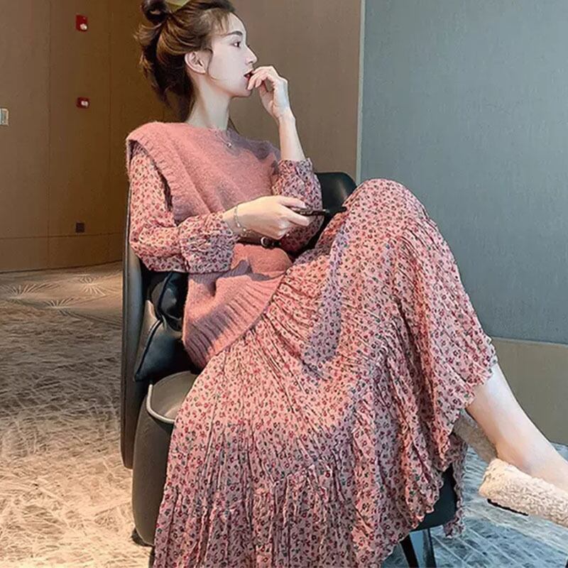 【セットアップ】 セットアップ レディース おしゃれ ワンピース 花柄 ジレ ニット ベスト 春 秋 冬 20代 30代 40代 きれいめ S M L XL