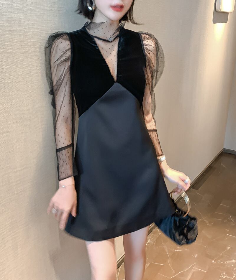 【パーティードレス】パーティードレス 結婚式 お呼ばれドレス 結婚式のお呼ばれ ワンピース 黒 ブラック ワンピース 20代 30代 40代 フォーマルドレス 袖あり シースルー ドレス ミニ 体型カバー フォーマルドレス ドレス 二次会 パーティー お呼ばれ フォーマル フォーマルワンピース シンプル おしゃれ S M L XL