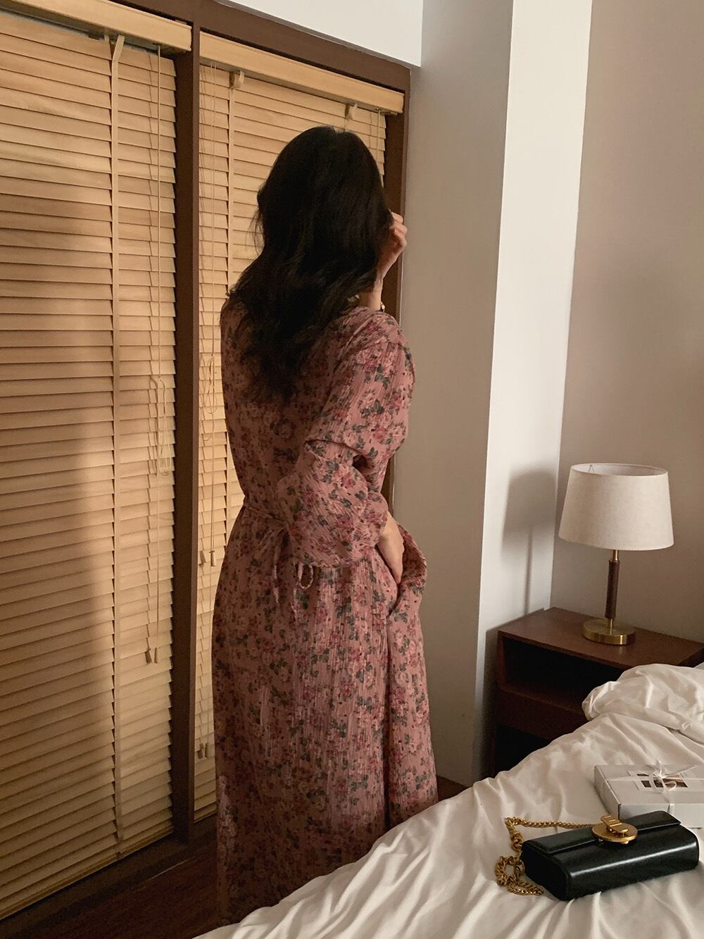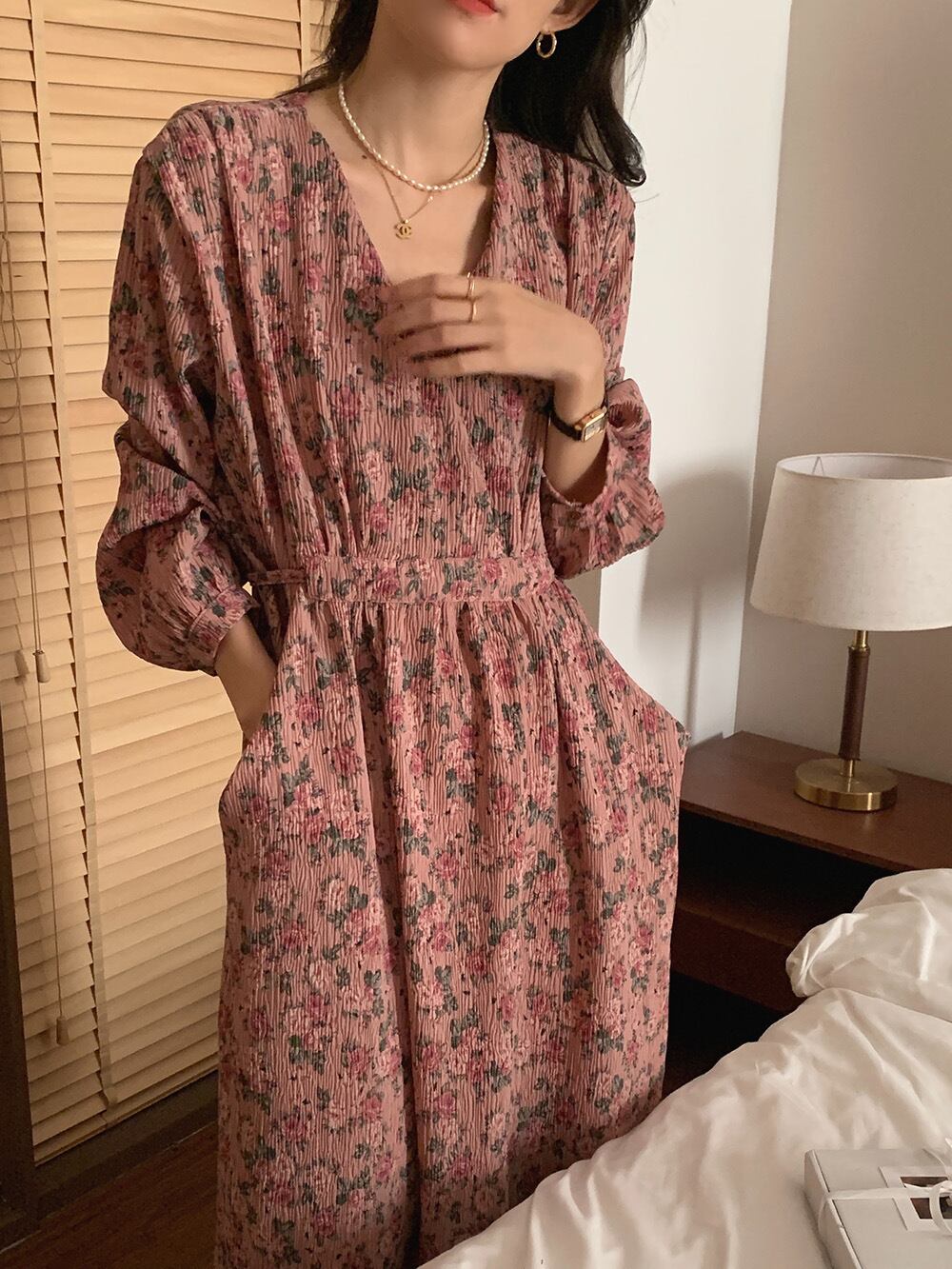【ワンピース】 ワンピース レディース 春 夏 秋 おしゃれ 20代 30代 40代 花柄 ロングワンピース 春秋 長袖 ロング 韓国 ワンピース ドレス ワンピース 大人 可愛い カジュアル きれいめ レトロ フリーサイズ