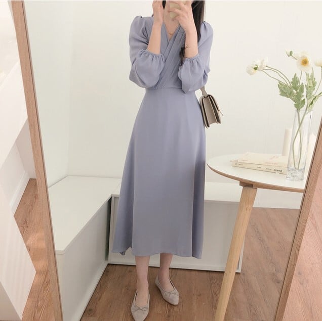 【ワンピース】 ワンピース レディース 春 秋 おしゃれ 20代 30代 40代 無地 カシュクール ロングワンピース 春秋 長袖 ロング 韓国 ワンピース ドレス ワンピース 大人 可愛い カジュアル きれいめ パープル 紫 アプリコット S M L