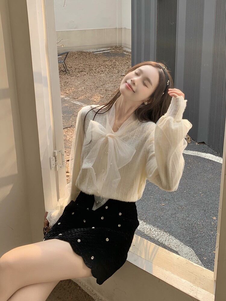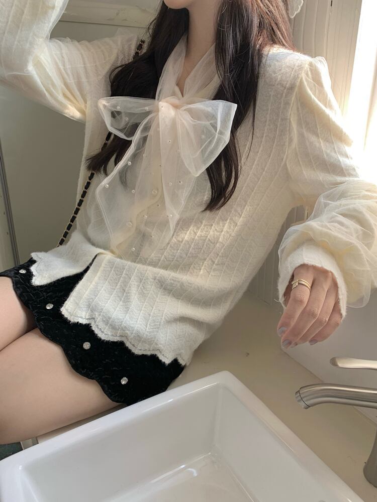 一枚で着てもカーデやジャケットからリボンをのぞかせてもキュート◎