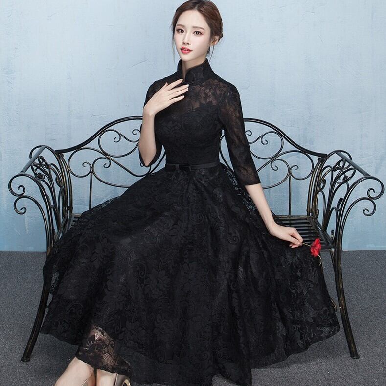 【パーティードレス】大きいサイズ パーティードレス 結婚式 お呼ばれドレス 結婚式のお呼ばれ ワンピース 黒 ブラック ロングワンピース 20代 30代 40代 フォーマルドレス 袖あり ミモレ丈 体型カバー お呼ばれ 二次会 総レース フォーマルワンピースシンプル おしゃれ ブラック 黒 ネイビー 青 S M L XL 2XL