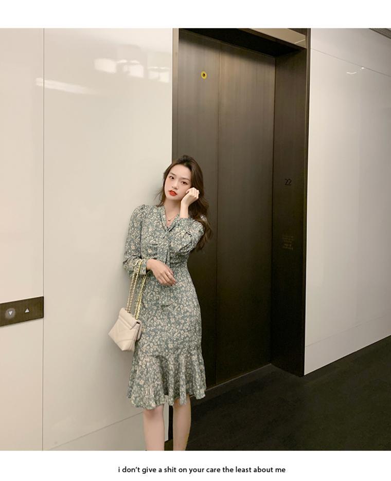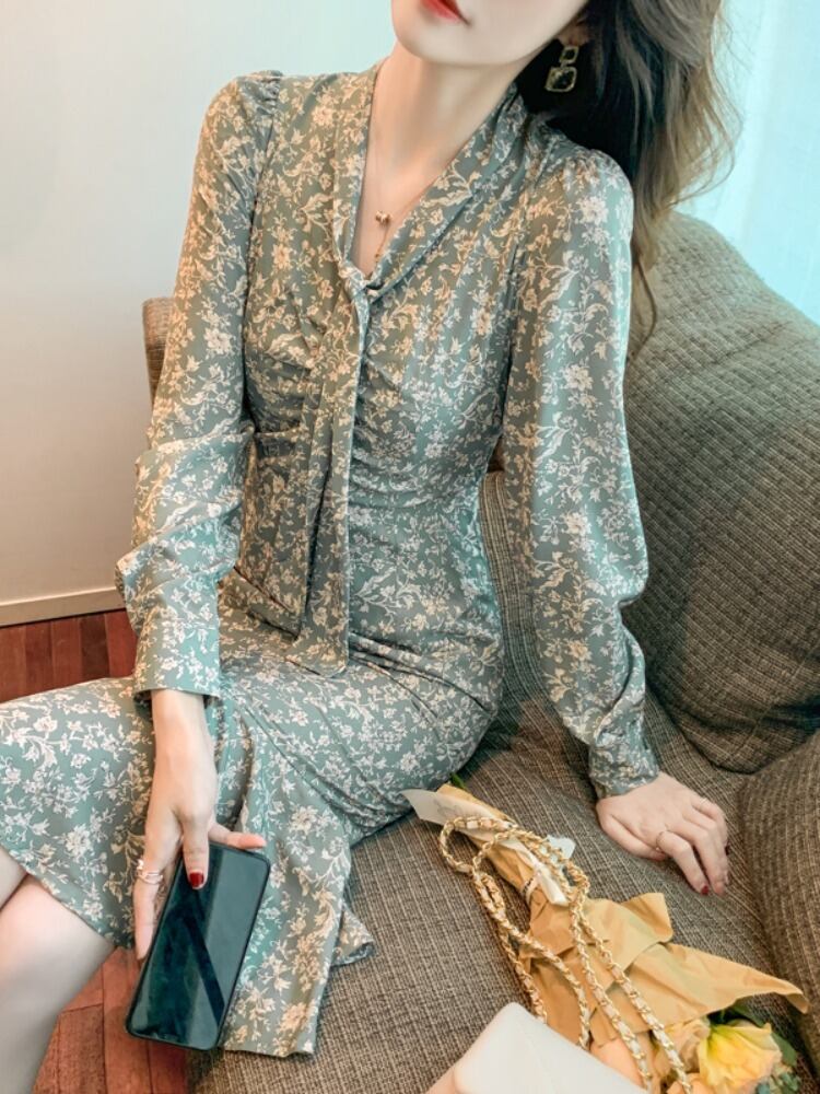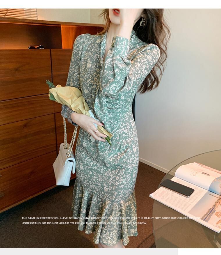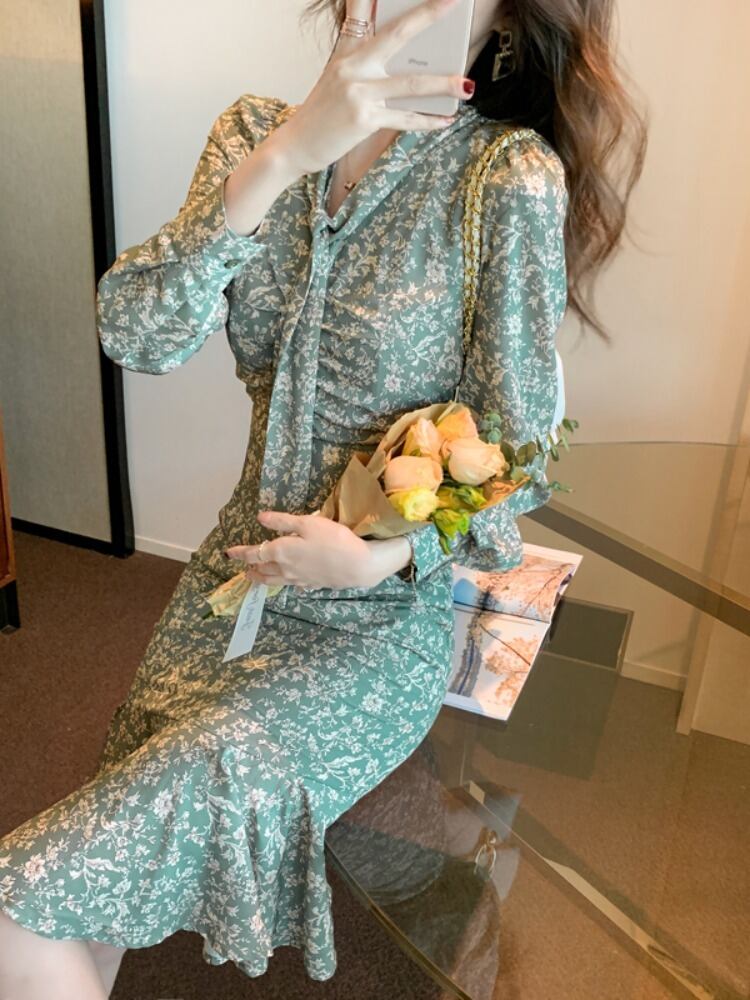 【ワンピース】ワンピース レディース おしゃれ 20代 30代 40代 春 秋 ひざ下 膝下 ワンピース 春秋 花柄 長袖 マーメイド ワンピース ワンピースドレス 韓国 ワンピース ドレス ワンピース 大人 可愛い きれいめ レトロ S M L