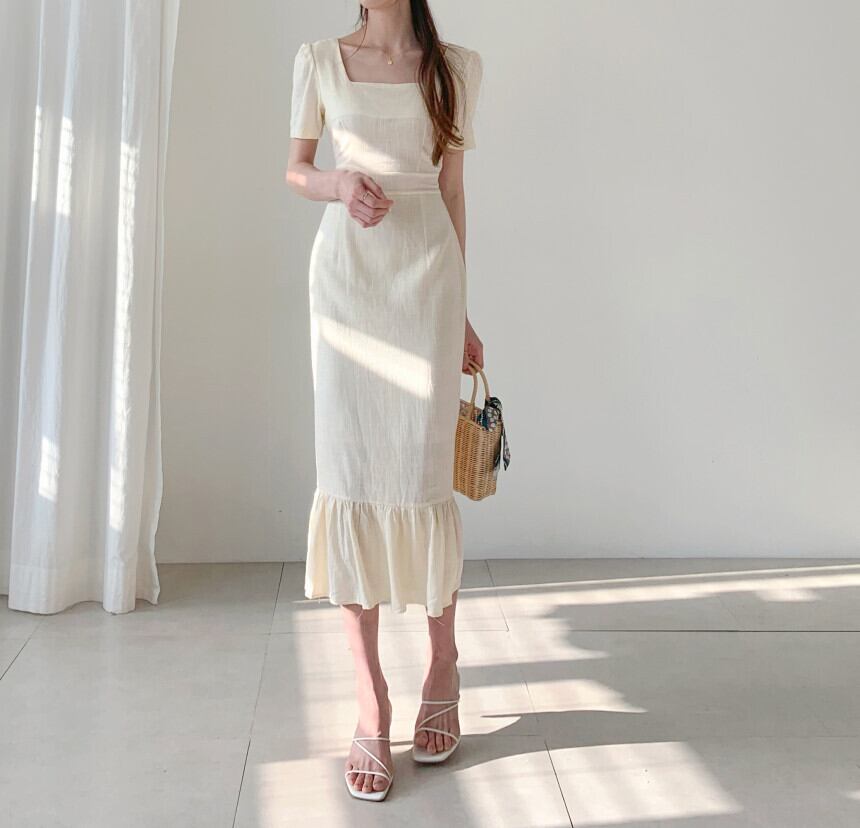 シンプルでエレガントなティアードワンピース。