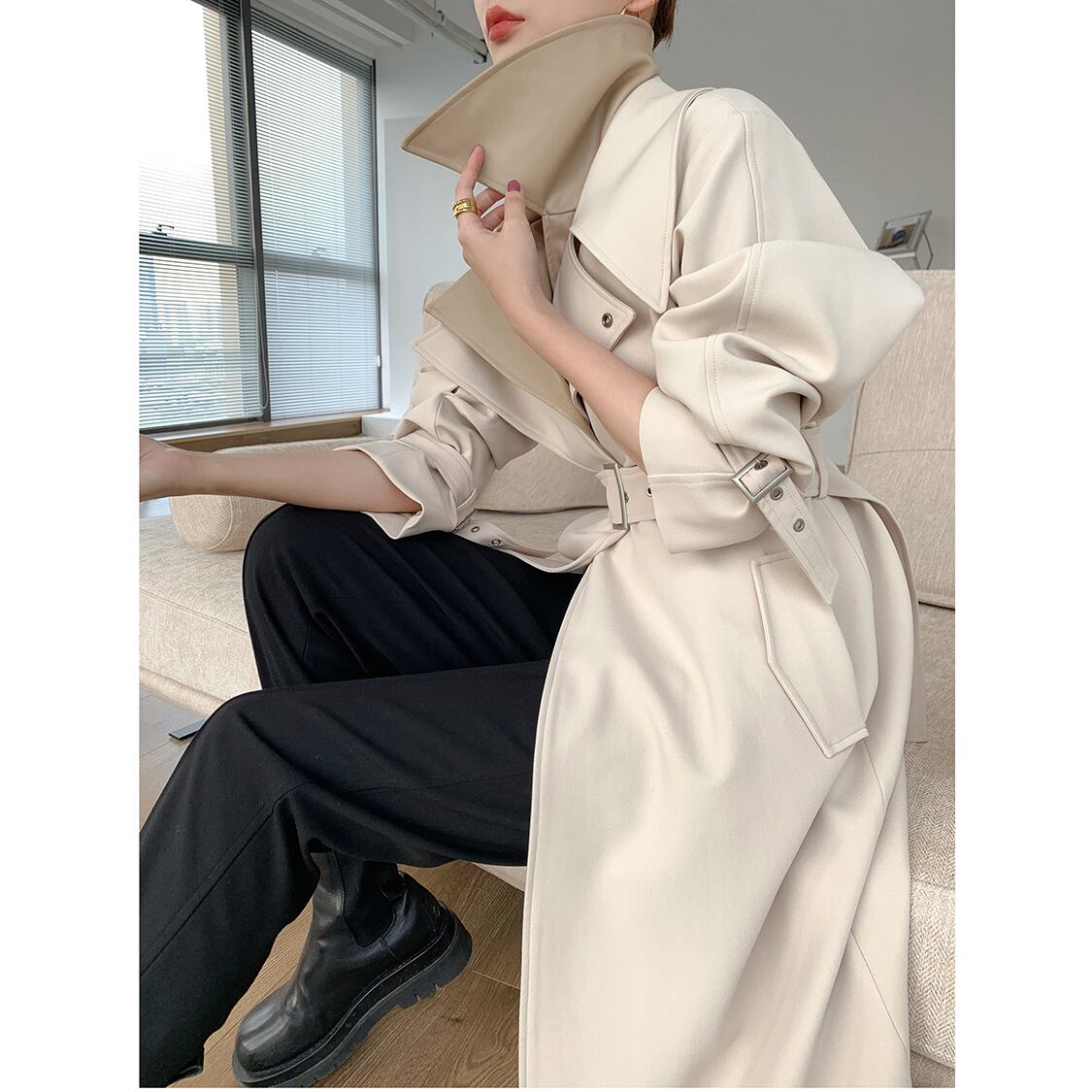 大人かっこいいバイカラーのトレンチコート。