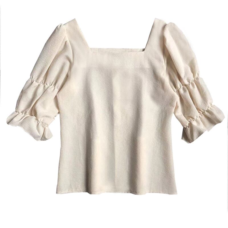 大人可愛いパフスリーブのシンプルブラウス。