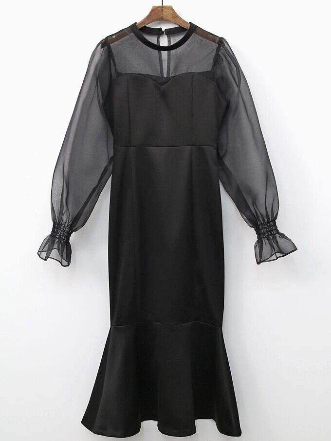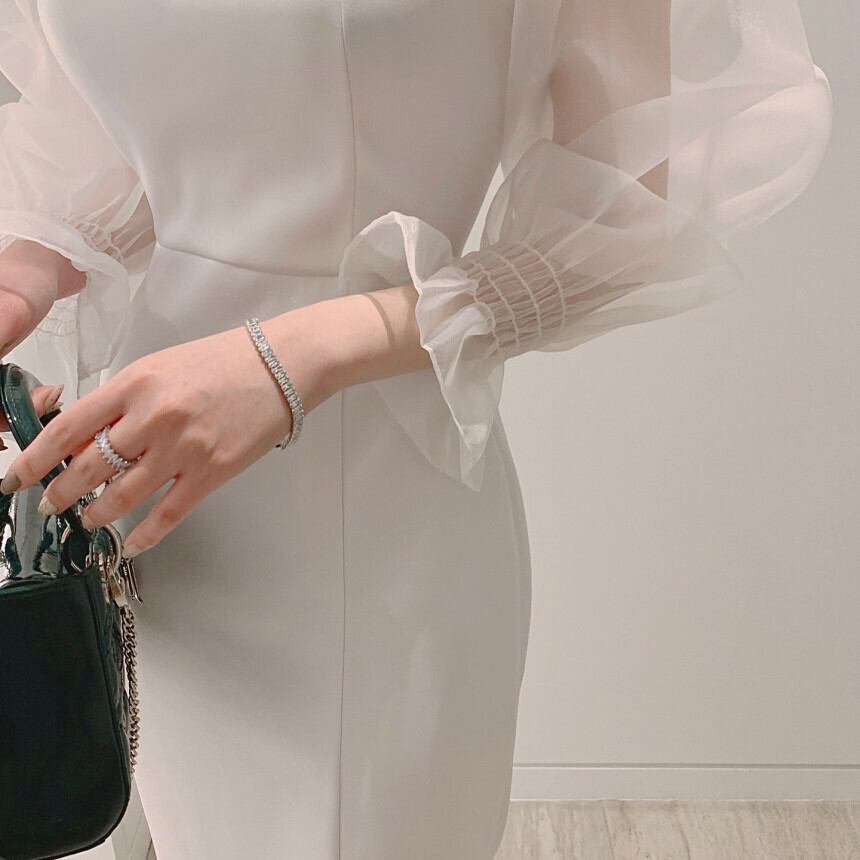 女性らしいフォルムを演出できるエレガントなシアーマーメイドドレス。