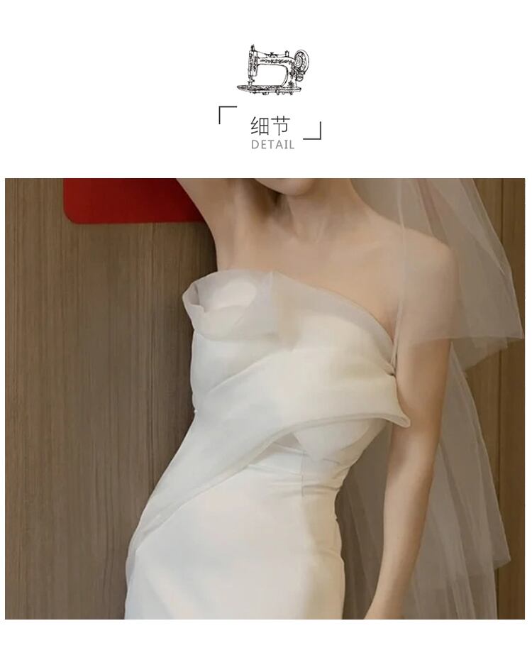 サテン地のエレガントなマーメイドラインのウエディングドレス。
